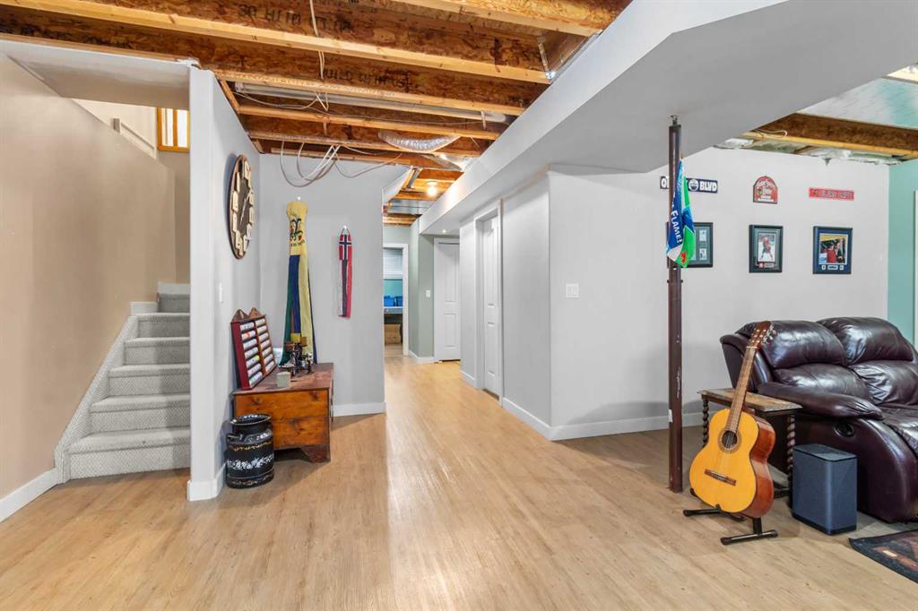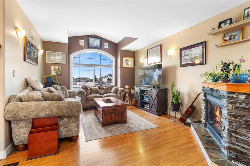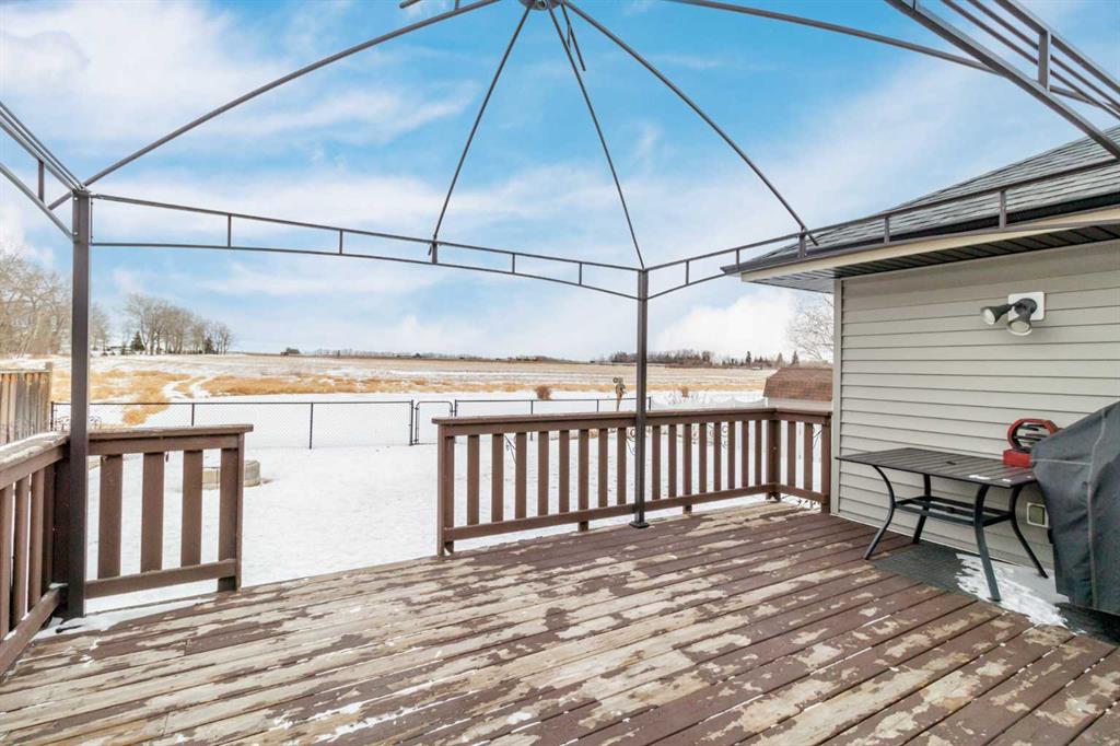 Bright, beautiful, cozy & comfortable is what comes to mind when you enter this lovely bungalow in Bowden. The large windows open into the living room, inviting natural light to showcase an open great-room feel. This house has it all - 3 bedrooms up, 2 baths, including a 4pc. main and 3pc. ensuite, main floor laundry, attached/insulated & finished garage, large windows & a stylish fireplace in the main living area, a bright, beautiful kitchen with coffee bar and pantry - and that's just upstairs!! Downstairs, you will find in-floor heat, 2 bedrooms & a den space, a family/rec room, a full 4pc bathroom, and an incredible amount of storage! Let's not forget about the yard, just off the kitchen, with a large east view exposure deck offering a natural gas hookup & gazebo overlooking a beautiful green space. The fully fenced backyard has gorgeous perennial flowerbeds and room for a vegetable garden if you desire. A few updates include a new high-efficiency water heater in 2024 and a new 25-year roof and new eaves-troughing in 2025. Located in a quiet subdivision, just minutes from schools, shopping, parks, and much more. Commutes: just 25 mins to Red Deer, 12 mins to Olds, and 10 mins to Innisfail.