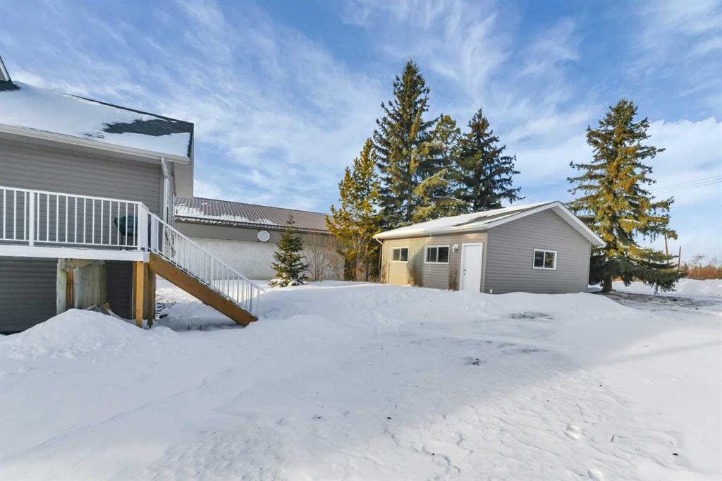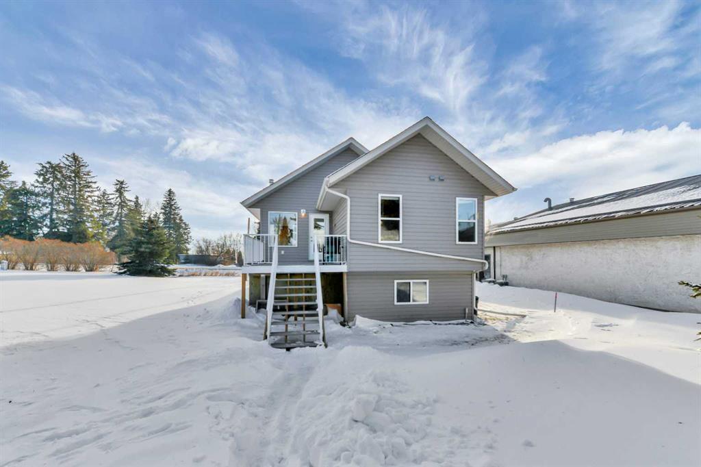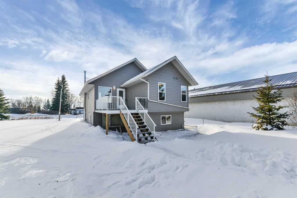If you have been searching for space without sacrificing convenience, this one stands out. Welcome to 1024 19th Ave in Lousana, offering a solid 2007 home and two extra titled lots that transform this property into a true acreage style setting in a quiet hamlet. Lousana is just a short drive to Red Deer and minutes from Delburne. The home features an open and airy main level with vaulted ceilings and plenty of natural light. The kitchen is designed for everyday living with oak cabinetry, a breakfast bar, and generous workspace. The primary bedroom includes its own ensuite, while a second bedroom and another full bathroom complete the main floor layout. Downstairs, the lower level offers nine foot ceilings and an open canvas for future development, equipped with a wood burning stove to create a warm comfortable space and to help keep heating bill down in the winter months. Outside, the front porch and rear deck offer multiple spots to relax and enjoy the surrounding property. One of the additional lots is currently used as a productive garden, adding to the self sufficient lifestyle appeal. The 24' by 24' garage with an oversized door and its own 100 amp panel provides excellent space for storage, hobbies, or workshop use. The hot water tank replaced in 2023, and the shingles from 2015. An air purification system is integrated into the furnace. This is a great opportunity for buyers looking for land, value, and versatility in a peaceful community setting.