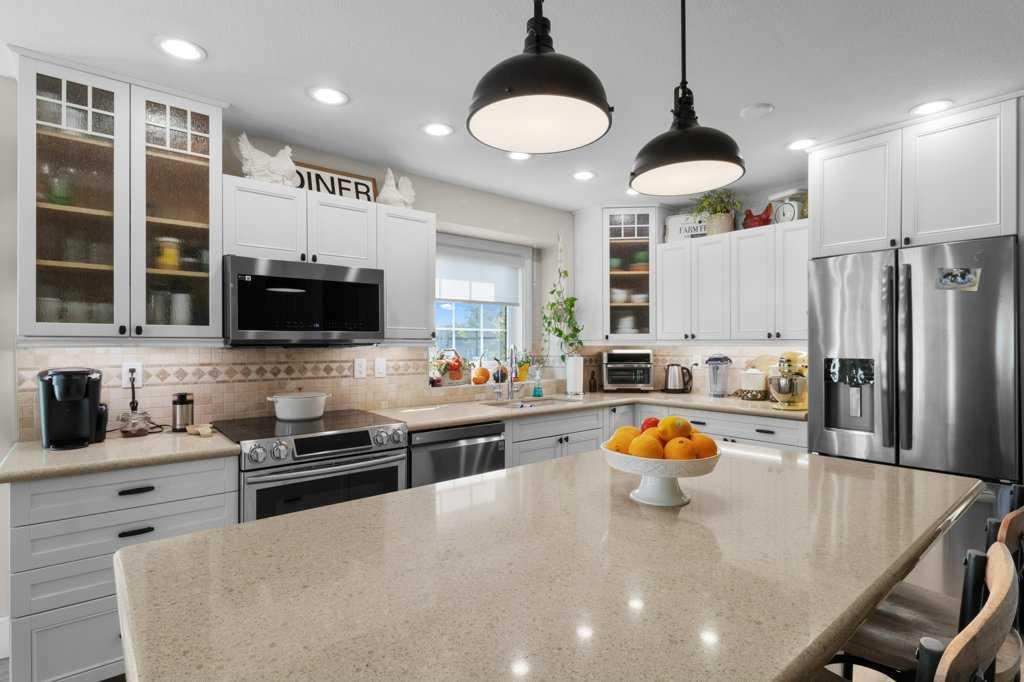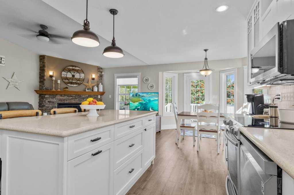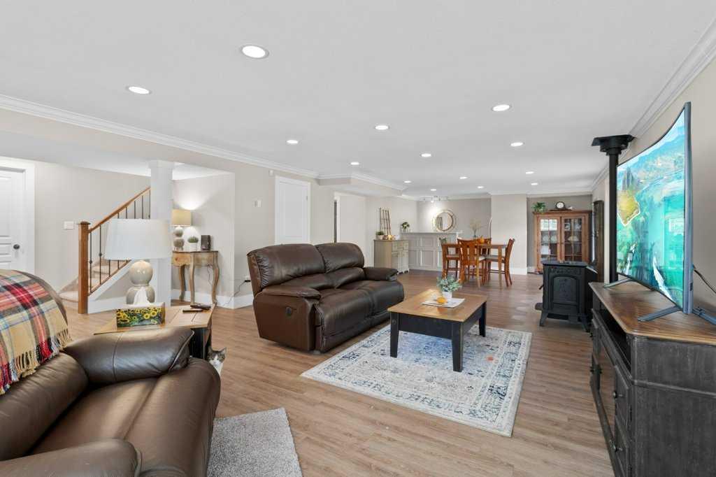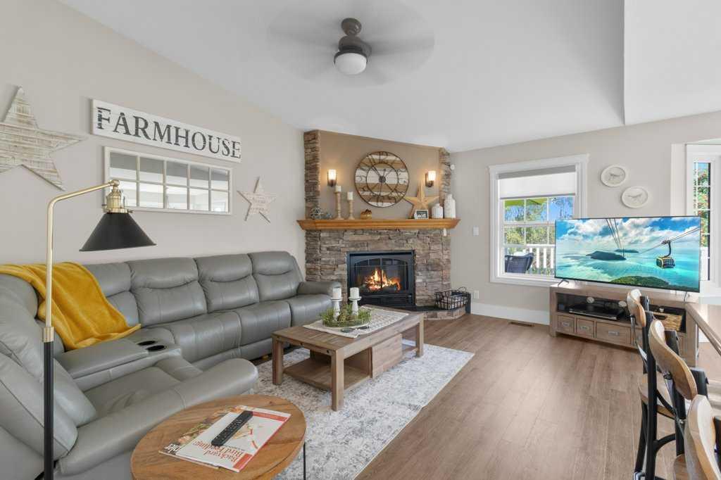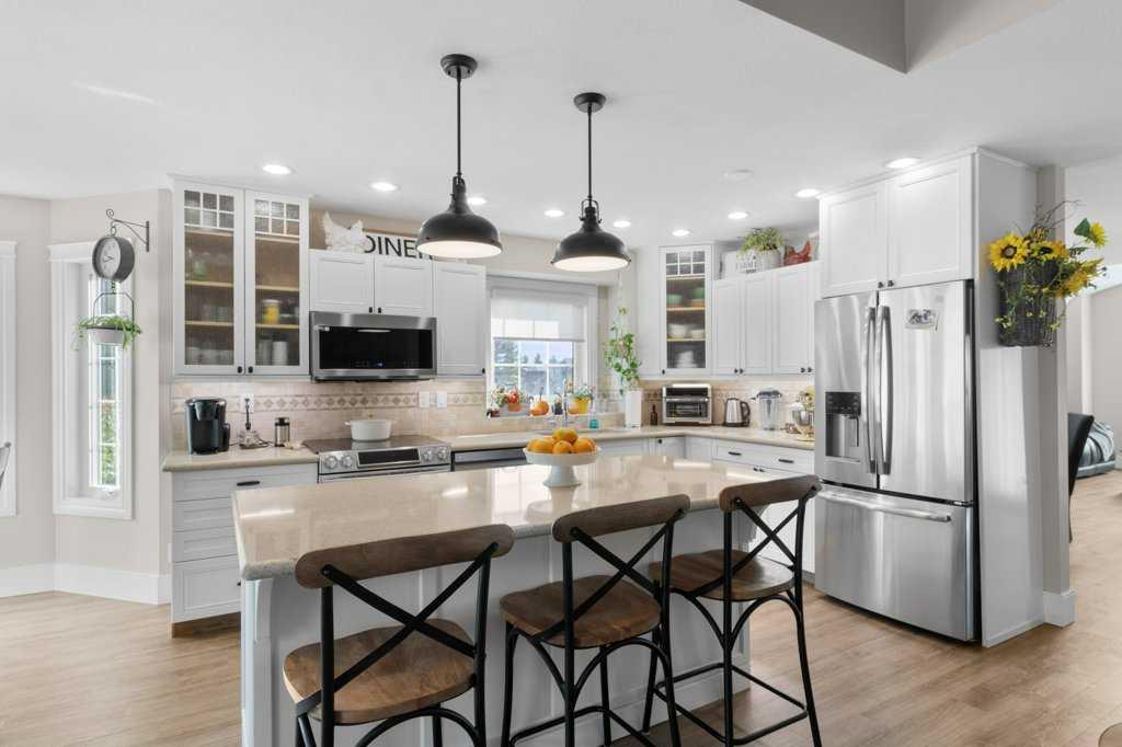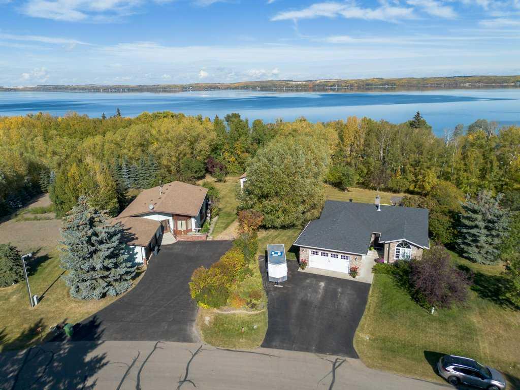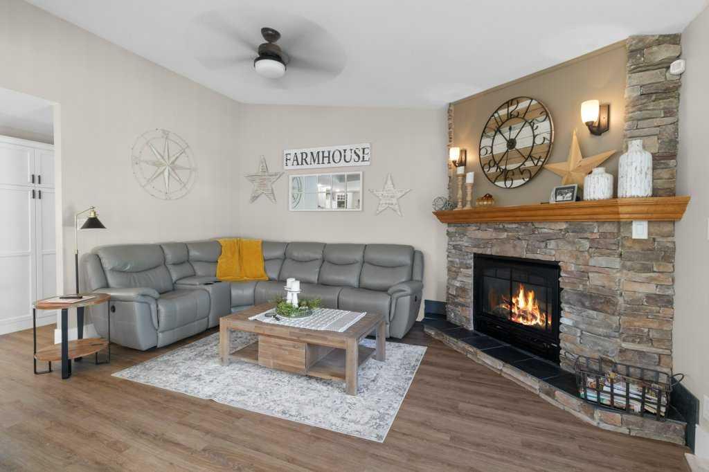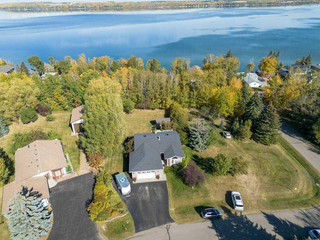 Located in the desirable Summer Village of Norglenwold, just a short stroll from the stunning shores of Sylvan Lake, this 1,603 sq. ft. walk-out bungalow offers an idyllic retreat. The home features an open floor plan beginning with a spacious entry that flows into a cozy living room with large windows. The kitchen and family room are designed for both function and style, complete with a large island, white cabinetry, abundant storage, stainless steel appliances, stone countertops and a cozy corner gas fireplace. A bright eating nook surrounded by windows, a formal dining room, and a convenient mudroom add to the thoughtful layout of this home. Beautiful windows throughout bring in natural light, enhancing every space. The main level offers three bedrooms, including a primary suite with a walk-in closet and a 4-piece ensuite with a charming claw-foot tub, while a second 4-piece bathroom accommodates the main floor. The walk-out basement expands the living space with a large recreation room, a pellet stove, wet bar area including sink and fridge, one more bedroom, laundry, two storage areas, a 3-piece bathroom, and the comfort of in-floor heating. Outdoor living is equally inviting with a large upper deck overlooking the backyard and a cement patio beneath that provides shade and shelter during the summer months. A double attached heated garage with two man doors, along with a beautifully landscaped yard featuring a chain-link fence, creates a very private retreat. The home has well-maintained features, including air conditioning, shingles approximately 10 years old and a water softener plus reverse osmosis filtration system offering added assurance for future owners. Enjoy the best of Sylvan Lake living with boating, golf, and an active lifestyle right at your doorstep.