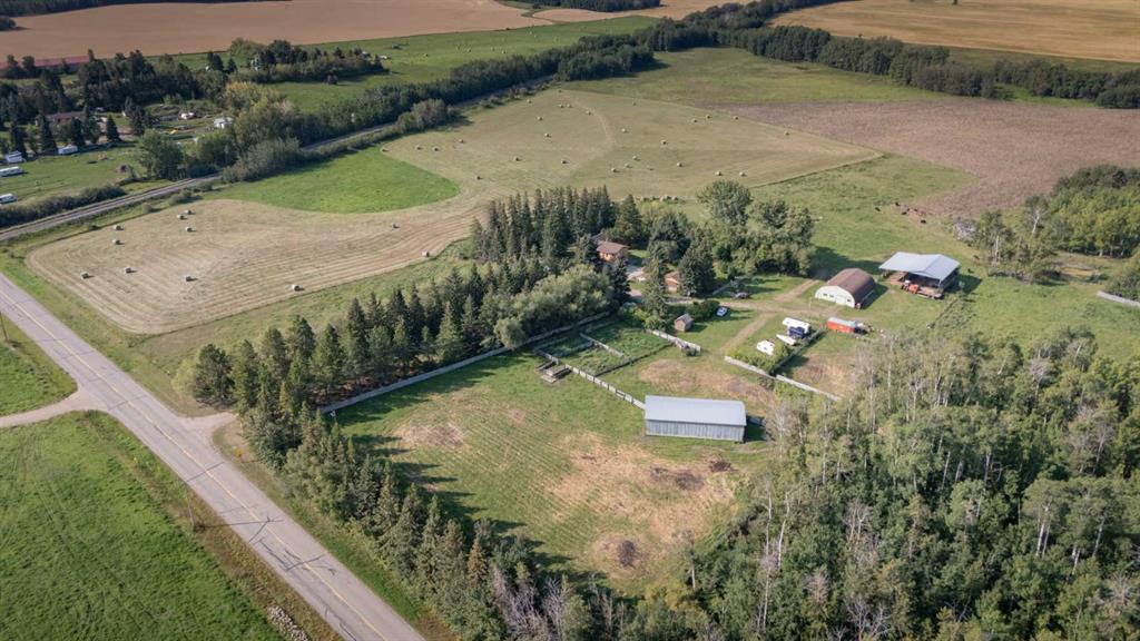 Opportunity awaits on this diverse 103-acre parcel located in a beautiful farming community, only 6 minutes from Red Deer and Sylvan Lake on pavement. The land offers a mix of grain, hay, pasture, and timber, plus excellent infrastructure for livestock and farming operations: