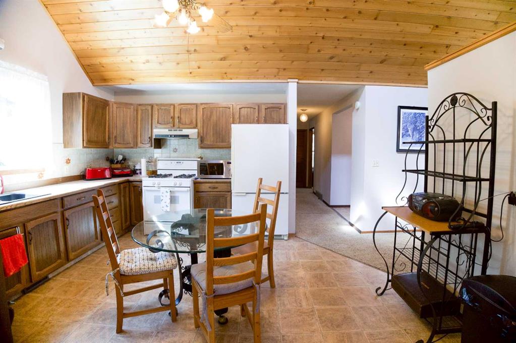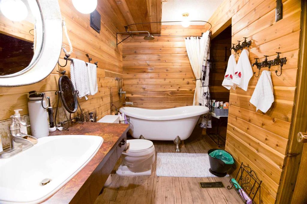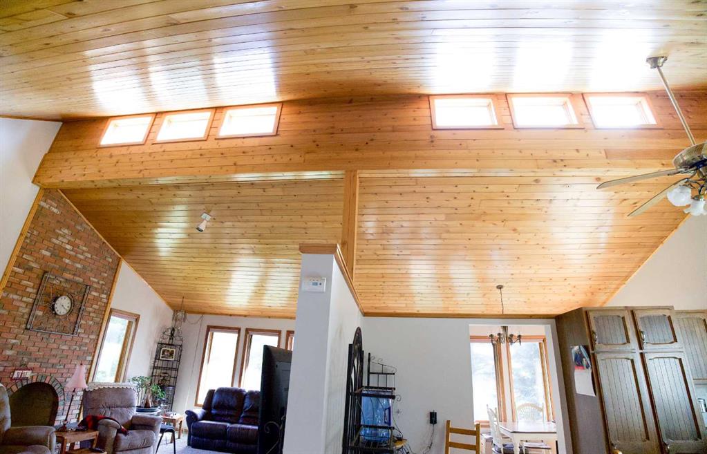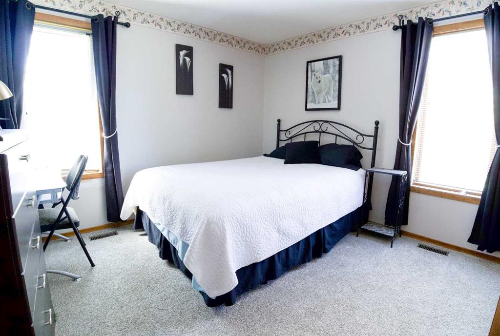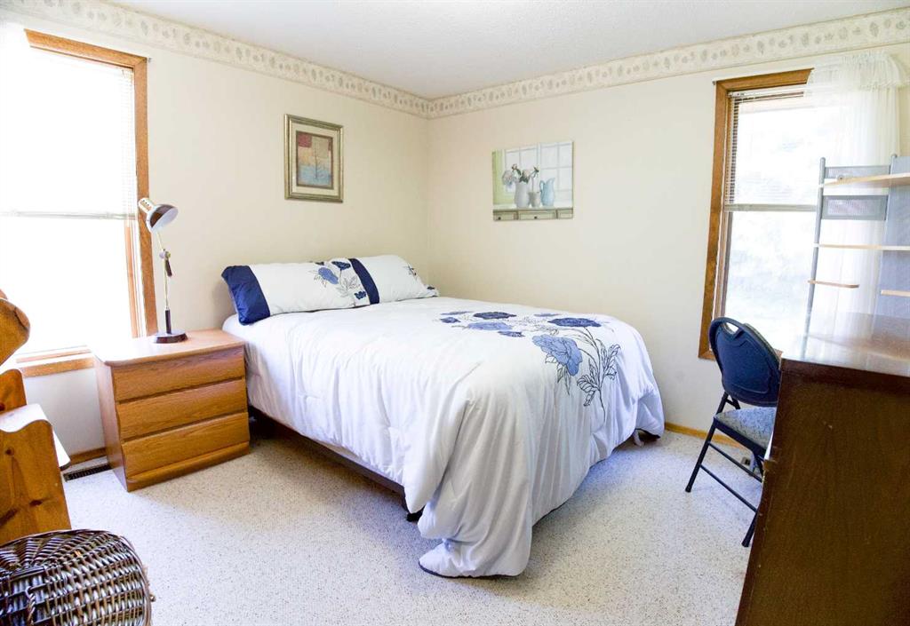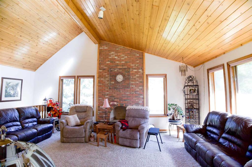 This well manicured raised bungalow provides a spacious bright living space with wrap-around windows, a stunning cedar vaulted ceiling, and a unique red brick fireplace bringing warmth and character to the home. Fully developed at 2668 sq. ft. with the main floor being 1336 sq. ft. would be considered a family home. The main floor includes a huge living room, large eat-in oak kitchen with an abundance of cabinets, formal dining room, two bedrooms, and a 5-piece bathroom with double vanity and laundry room. The walk-out lower level features a generous primary bedroom, family room with wood-burning fireplace for those winter days, an additional bedroom, office, lovely 4-piece bathroom with claw-foot tub, and a former sauna space which could be brought back for original. Double detached garage is a small walk to house. This home is embraced by mature trees and a beautifully landscaped yard, creating a private, park-like retreat that perfectly complements the home and the versatility of the land.