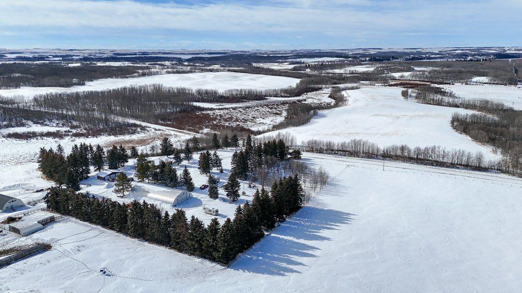 Rare opportunity to own a full, uncut ¼ section in a prime location at the south end of Pine Lake — just 30 minutes to Red Deer and only 90 minutes to Calgary! This incredible property offers a picturesque, parklike yard site surrounded by towering spruce trees and mature landscaping, creating a private and peaceful setting. A natural creek flows from Pine Lake through the south side of the land, enhancing the rolling hills, scenic pasture, and approximately 80 arable acres. Wildlife is abundant, with moose, deer, and elk commonly seen on the property. The 1960s ranch-style bungalow is nestled into the mature yard and has seen important mechanical upgrades, including a newer hot water tank and pressure tank. There’s also an additional set of services with Power, water and natural gas already installed and ready for a second home — ideal for extended family or future expansion. Outbuildings include a 24’ x 36’ detached garage, two large Quonsets, and two separate locations equipped for automatic livestock waterers, making this a functional and versatile agricultural setup. Whether you’re looking to farm, ranch, invest, or build your dream country estate, this is a rare chance to secure a full quarter section in one of Central Alberta’s most desirable rural communities. Approx 20 Acres of newly seeded hay crop on the South Side of the property is in alfalfa, brome & Timothy mix. Whispering Pines Golf & CC., boating and fishing at the lake is just around the corner!
