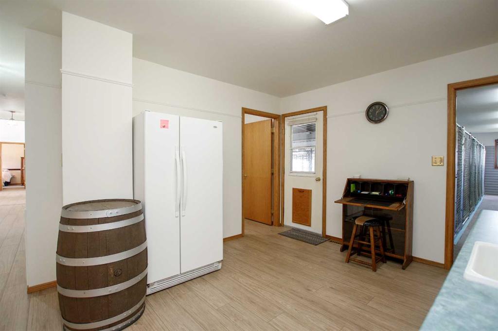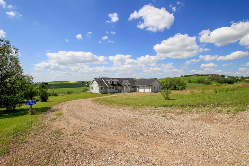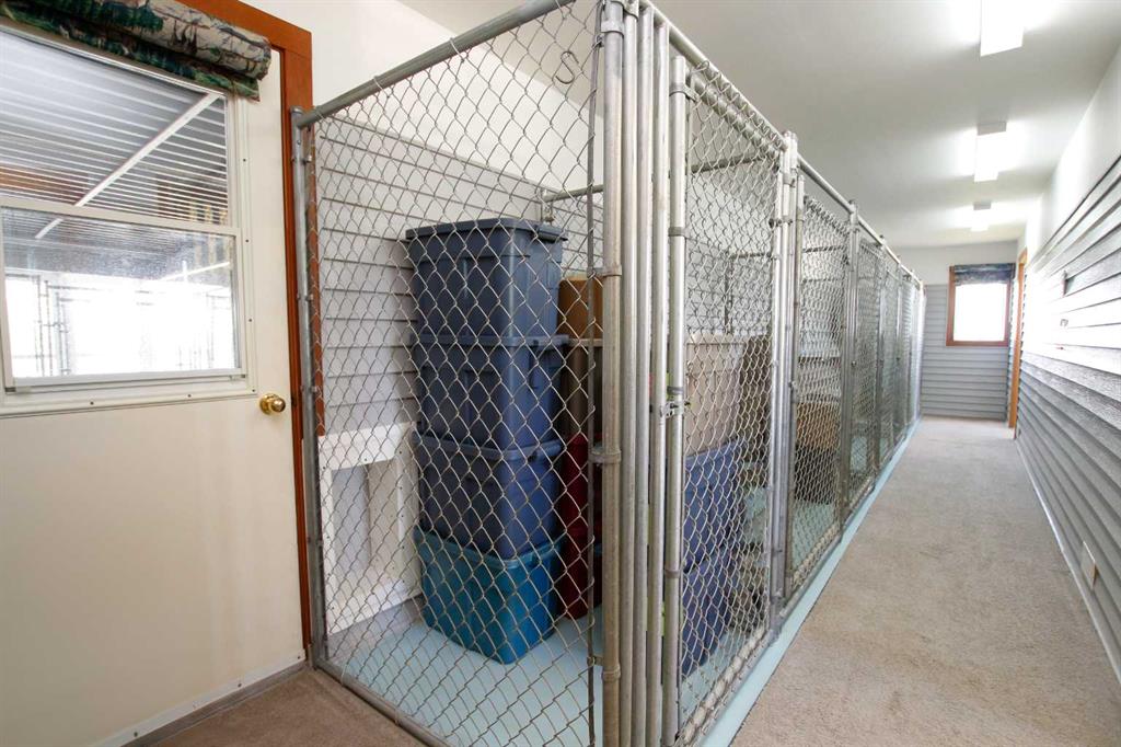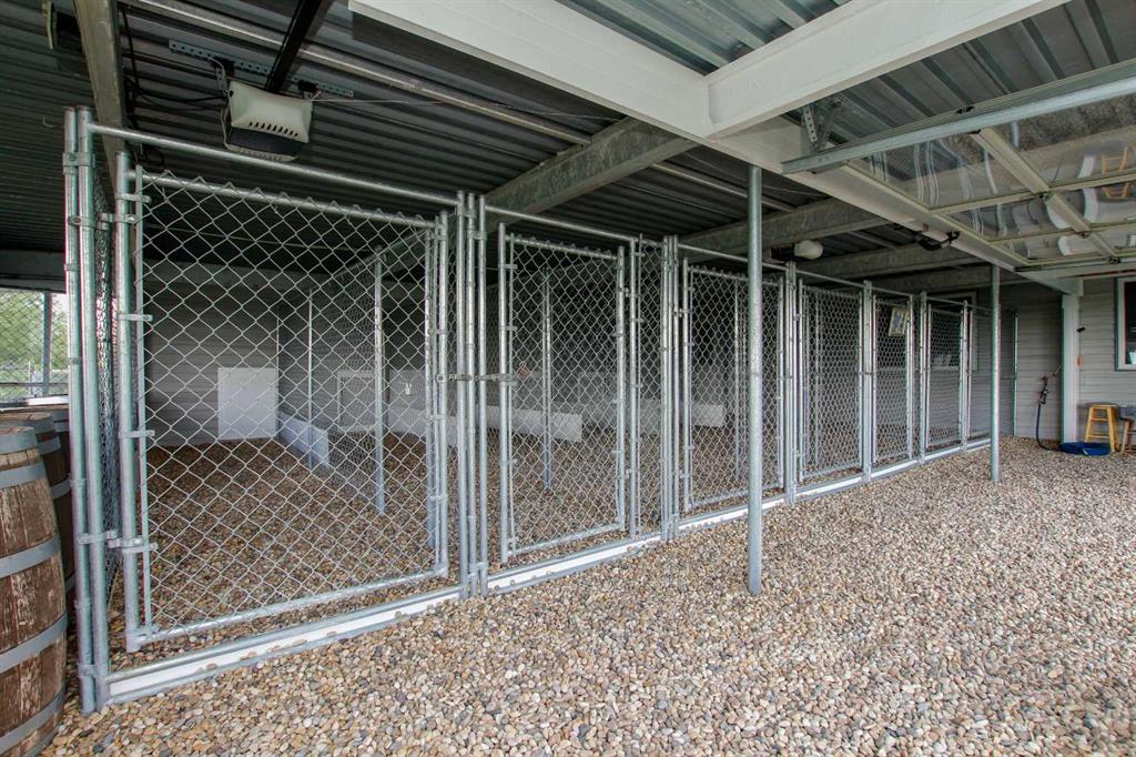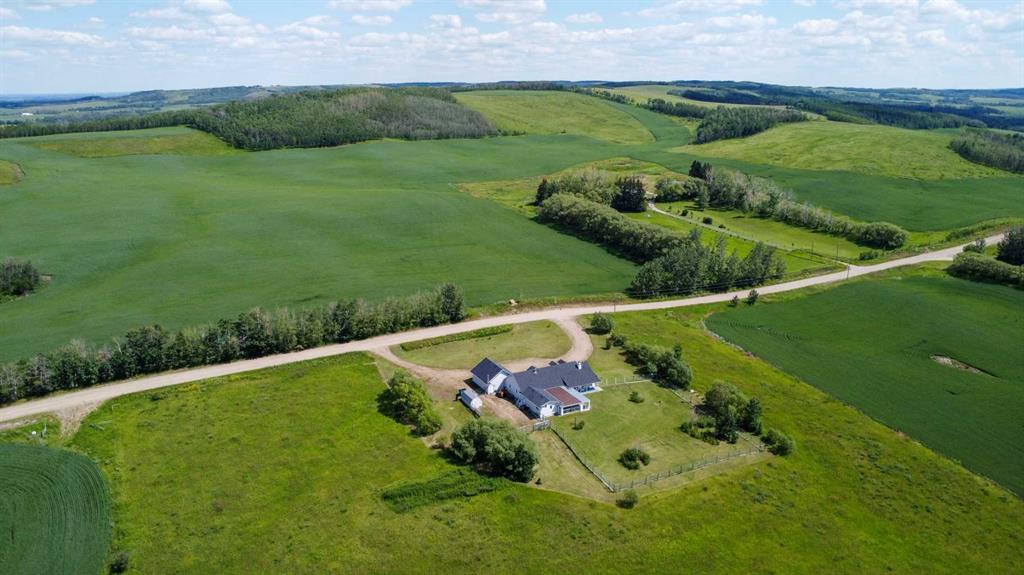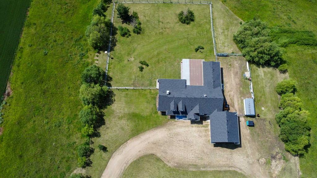 5.61 ACRES LESS THAN 10 MINUTES EAST OF RED DEER ~ 2 + 1 BEDROOM, 3 + 1 BATH BUNGALOW WITH OVER 2480 SQ. FT. ABOVE GRADE ~ ATTACHED KENNEL ~ HEATED 26' L X 30' W ATTACHED GARAGE W/WORKSHOP & 220V WIRING ~ GATED RV PARKING ~ Presently a 1 person smoking residence. Recent updates - Shingles & hot water tank (2023), flooring, interior & exterior paint, tile backsplash, new well pump (2025) ~ A well cared for custom designed original owner home ~ A Multi Dog Owners Dream ~ Open concept layout is complemented by vaulted ceilings with dormer windows that create a feeling of spaciousness ~ The living room features a rock faced fireplace, large windows offer stunning country views, & dual patio door access to the covered deck and backyard ~ The dining room hosts more large windows + patio door access ~ The kitchen offers a functional layout with plenty of light stained oak cabinets, full subway tile backsplash, ample counter space, & a bright window above the sink that overlooks the front yard ~ The primary bedroom can easily accommodate a king bed plus multiple pieces of furniture, offers a walk in closet, 3 piece ensuite & French doors into a dog care area/additional closet/flex space ~ Second bedroom is also a generous size with a 3 piece ensuite ~ The Office Area/Third bedroom is located across from the main bathroom, overlooks the exterior kennel area + has an adjoining room, presently a Hobby Craft/Sewing room, but would make another excellent walk in closet ~ Currently set up for the dog owner/breeder of show dogs, this home offers a large dog food-prep cabinet w/ pull out drawers, cupboards & sink , + multiple access doors to the kennel areas ~ Adjacent is an additional storage room w/ built in shelving ~ The Attached Kennel is currently set up with 4 indoor/outdoor chainlink dog runs, with room & panels for setting up 7 runs, forced air, underfloor heat, A/C, waterproof flooring, floor drain, vinyl siding on the walls for easy cleaning and maintenance and multiple door access to the the outdoor kennel area & large fully fenced dog yard ~ Outdoor kennel can be fully enclosed with two overhead electric doors which provides full protection from the weather elements year around, + easy access to the home and fully fenced yard areas ~ Adjoining the interior kennel is a Large Storage Room w/ vacuum outlet, H/C water outlet, and door access to the north facing fenced, gated RV parking area ~ The mud room has access to the attached garage & conveniently located laundry room ~ 26' L x 30' W heated attached garage, insulated, drywalled, 220V wiring, cabinets, work benches, sink + door access to the gated RV parking area ~ The basement (+ rock crawl space under the kennel) is currently unfinished, offers tons of storage space, a cold room + vacuum outlet ~ Endless stunning west facing views & tons of space with large chainlink fenced areas, 2 exterior H/C water taps, multiple doors to the house, kennel & garage, + a storage shed.