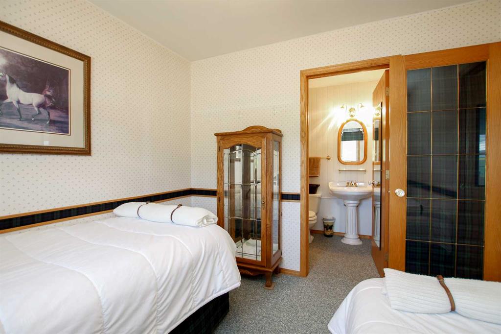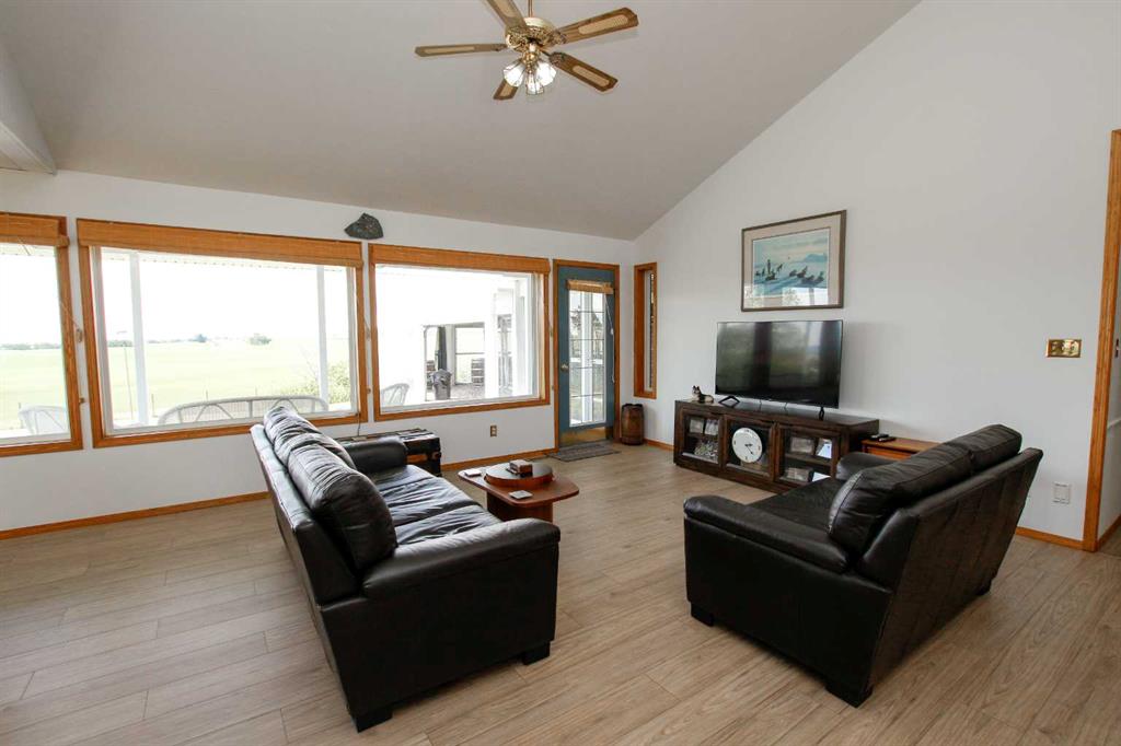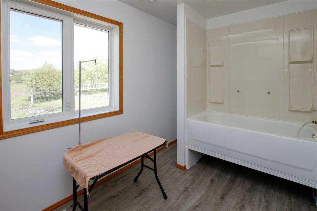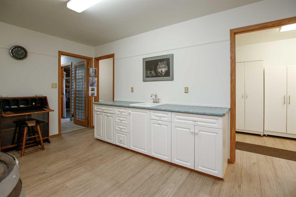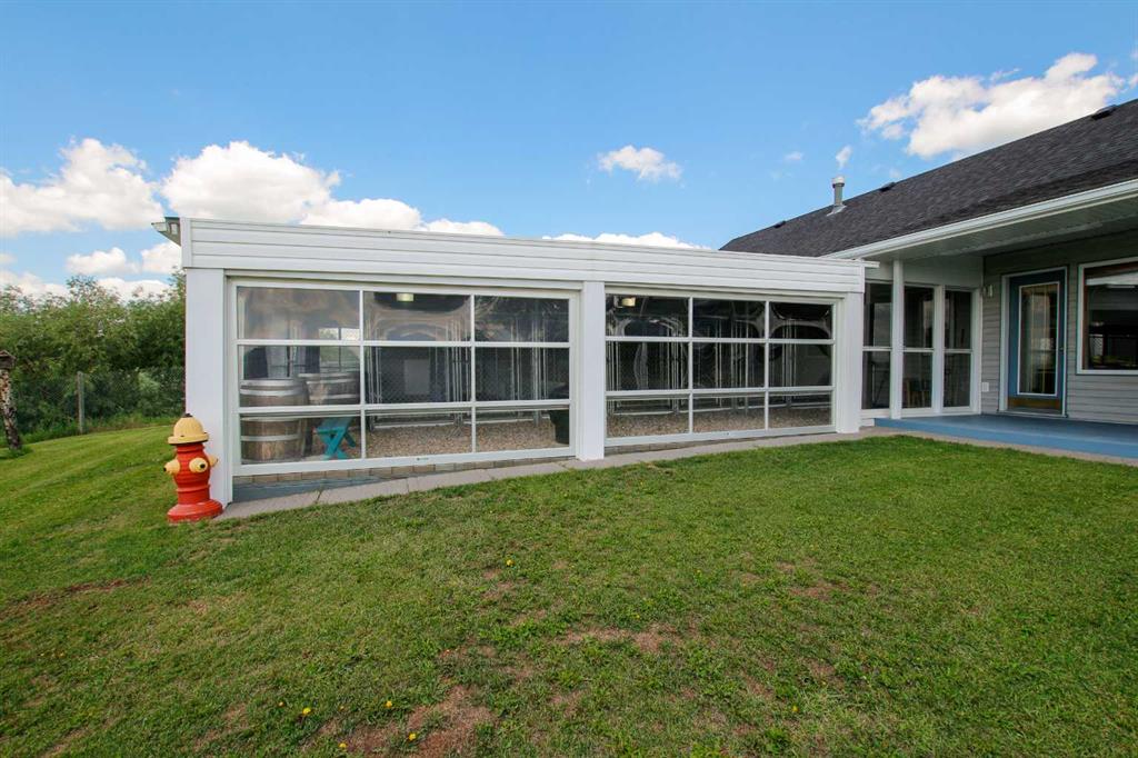 5.61 ACRES LESS THAN 10 MINUTES EAST OF RED DEER ~ 2 + 1 BEDROOM, 3 + 1 BATH BUNGALOW WITH OVER 2480 SQ. FT. ABOVE GRADE ~ ATTACHED KENNEL ~ HEATED 26' L X 30' W ATTACHED GARAGE W/WORKSHOP & 220V WIRING ~ GATED RV PARKING ~ Presently a 1 person smoking residence. Recent updates - Shingles & hot water tank (2023), flooring, interior & exterior paint, tile backsplash, new well pump (2025) ~ A well cared for custom designed original owner home ~ A Multi Dog Owners Dream ~ Open concept layout is complemented by vaulted ceilings with dormer windows that create a feeling of spaciousness ~ The living room features a rock faced fireplace, large windows offer stunning country views, & dual patio door access to the covered deck and backyard ~ The dining room hosts more large windows + patio door access ~ The kitchen offers a functional layout with plenty of light stained oak cabinets, full subway tile backsplash, ample counter space, & a bright window above the sink that overlooks the front yard ~ The primary bedroom can easily accommodate a king bed plus multiple pieces of furniture, offers a walk in closet, 3 piece ensuite & French doors into a dog care area/additional closet/flex space ~ Second bedroom is also a generous size with a 3 piece ensuite ~ The Office Area/Third bedroom is located across from the main bathroom, overlooks the exterior kennel area + has an adjoining room, presently a Hobby Craft/Sewing room, but would make another excellent walk in closet ~ Currently set up for the dog owner/breeder of show dogs, this home offers a large dog food-prep cabinet w/ pull out drawers, cupboards & sink , + multiple access doors to the kennel areas ~ Adjacent is an additional storage room w/ built in shelving ~ The Attached Kennel is currently set up with 4 indoor/outdoor chainlink dog runs, with room & panels for setting up 7 runs, forced air, underfloor heat, A/C, waterproof flooring, floor drain, vinyl siding on the walls for easy cleaning and maintenance and multiple door access to the the outdoor kennel area & large fully fenced dog yard ~ Outdoor kennel can be fully enclosed with two overhead electric doors which provides full protection from the weather elements year around, + easy access to the home and fully fenced yard areas ~ Adjoining the interior kennel is a Large Storage Room w/ vacuum outlet, H/C water outlet, and door access to the north facing fenced, gated RV parking area ~ The mud room has access to the attached garage & conveniently located laundry room ~ 26' L x 30' W heated attached garage, insulated, drywalled, 220V wiring, cabinets, work benches, sink + door access to the gated RV parking area ~ The basement (+ rock crawl space under the kennel) is currently unfinished, offers tons of storage space, a cold room + vacuum outlet ~ Endless stunning west facing views & tons of space with large chainlink fenced areas, 2 exterior H/C water taps, multiple doors to the house, kennel & garage, + a storage shed.