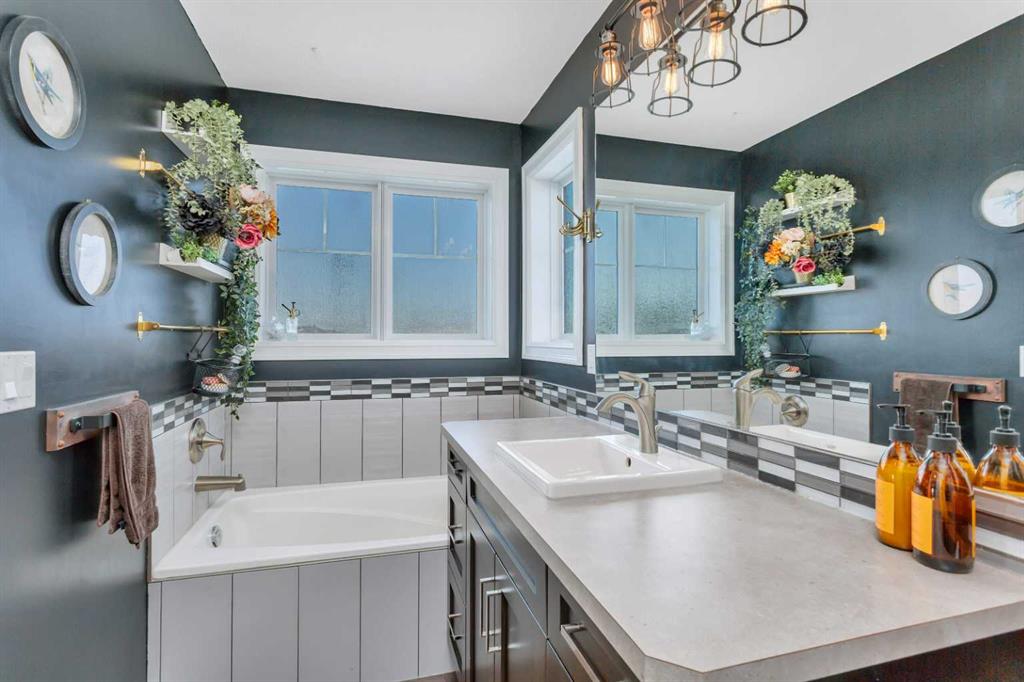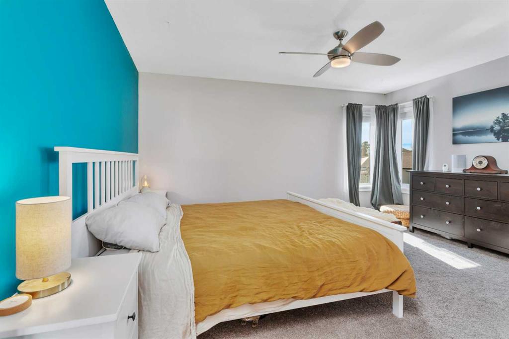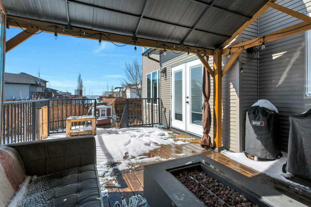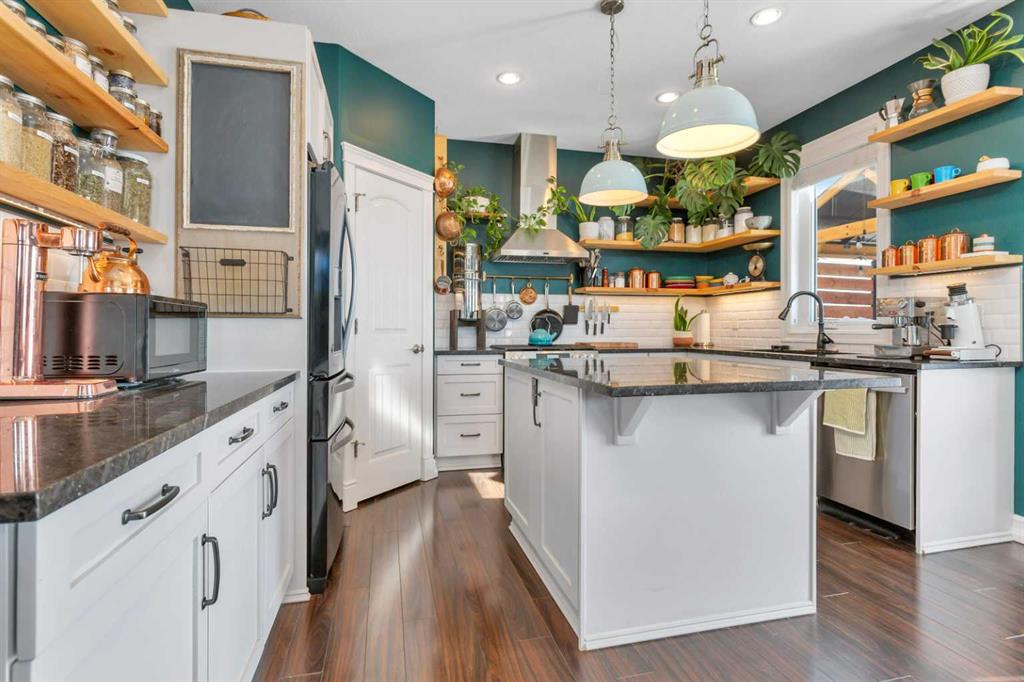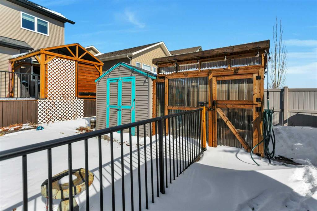 197 Sabre Road delivers with a 2-storey layout, heated garage, central air, and a finished basement with in-floor heat, all set on a 7000 sq ft corner lot minutes to Gasoline Alley and Red Deer. A well-designed 2-storey detached home offering 5 bedrooms, 3.5 bathrooms, and a layout that balances everyday function with standout features. The open concept main floor is ideal for both daily living and entertaining, anchored by a spacious kitchen with granite countertops, a island, and seamless flow into the dining and living areas. A gas fireplace adds warmth and comfort, while central air keeps the home cool through the summer months. A dedicated main floor office provides flexibility for remote work or study, and main floor laundry adds convenience. The double attached heated garage is perfect for Alberta winters. Upstairs, the primary bedroom is a true retreat with two walk-in closets and a private ensuite featuring a soaker tub and separate shower. Additional bedrooms offer space for family or guests. The fully developed basement includes in-floor heating, creating a comfortable extension of the home for recreation, movie nights, or hosting. Set on a 7000 sq ft corner lot, the outdoor space is built for lifestyle and utility. Enjoy the back deck with gazebo, fire table, and gas line for BBQs. The yard also features RV parking, raised garden beds, a greenhouse, chicken coop, and a storage shed. Solar panels contribute to energy efficiency.
