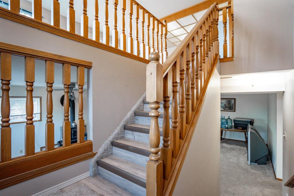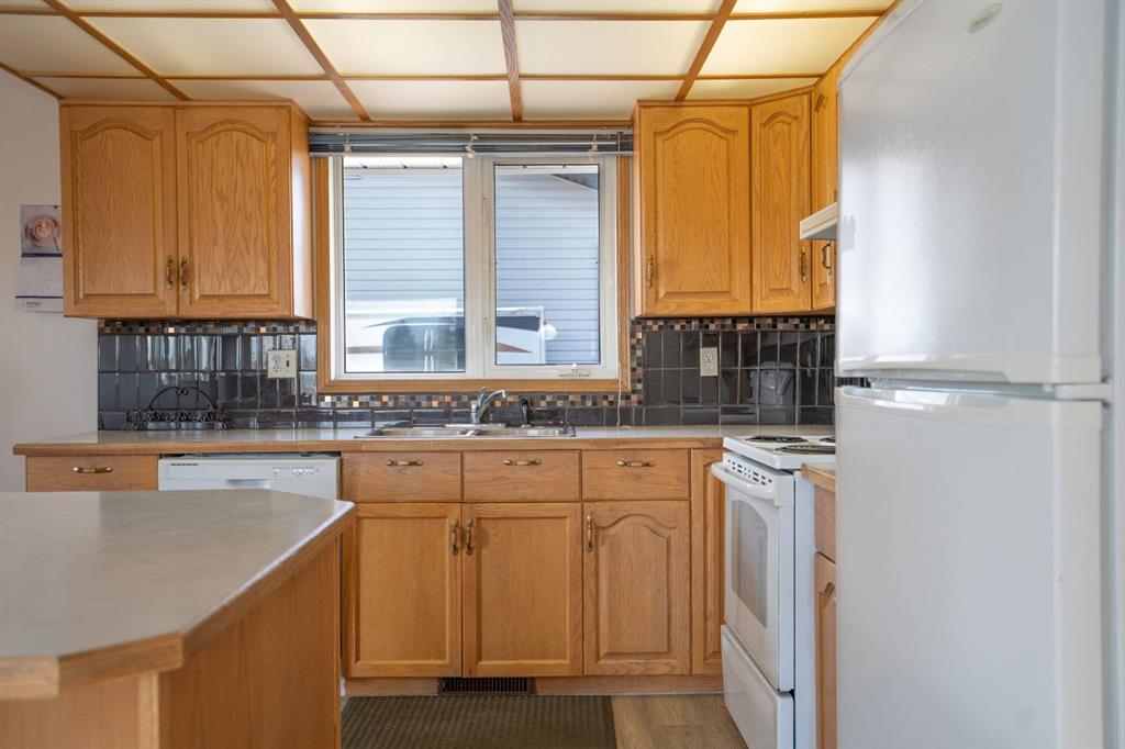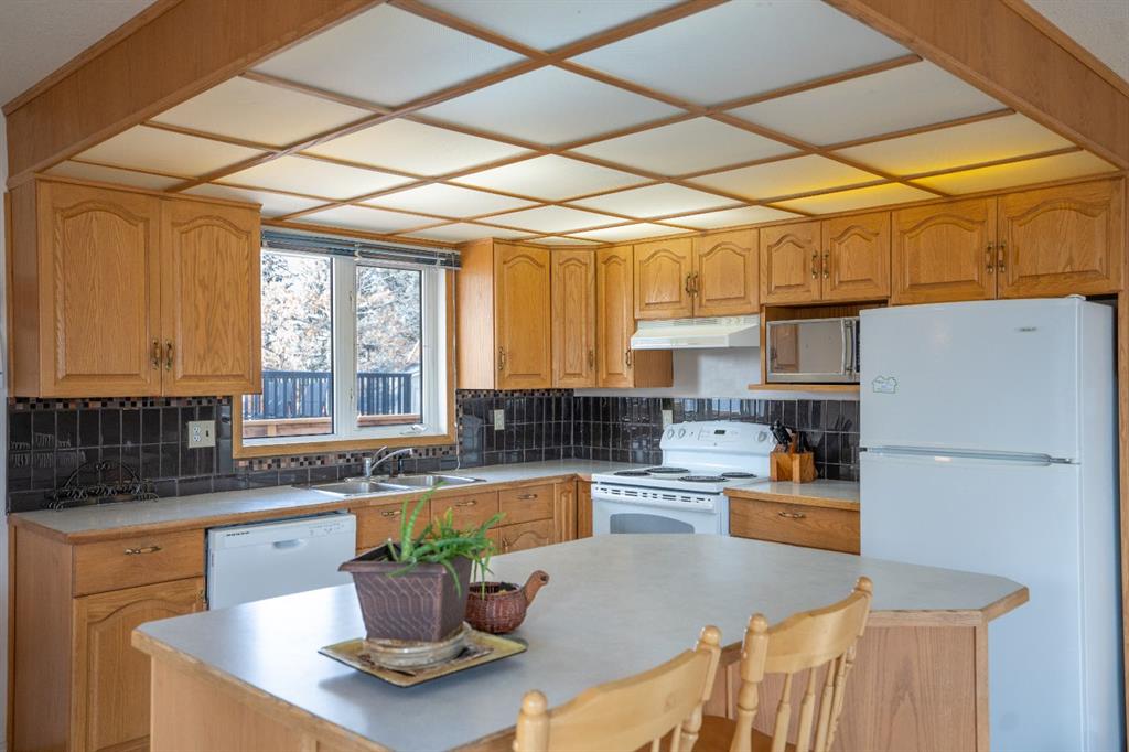 WELCOME TO ALIX! From the great small town nestled in the hills of Lacombe County comes a great bi-level on a big corner lot with no maintenance landscaping all throughout! Situated with easy access to the water for swimming and paddle boarding, and one of the best views of Alix lake that will forever be unimpeded as across the road is just green space and the head of the 6+ km nature trail for you to enjoy! The upper level offers a nice open floorpan with lots of wood cabinets and a kitchen island. Opening onto a big living room which makes the most of the view through the large bay window. Out a set of French patio doors you can step onto the new wrap around deck and enjoy the outdoors, tucked in by your own mature spruce trees. Two bedrooms up here, a four piece main bathroom and a 3 piece ensuite bathroom, plus a great big laundry room that has room for a desk if you wanted to put in a home office. Downstairs we come to find a very large family room with great big windows, lake views, a lovely wood burning stove for atmosphere, and a counter and utility hookups for a kitchenette. The current owner is using it for home brewing! Two more bedrooms, a third bathroom and a large utility room complete this great home. Through the backyard, past the fire pit, pop into the double detached garage, ready for all your projects or a place to keep the vehicles out of the elements. Alix is a rocking small town with great proximity to Lacombe, Stettler and Red Deer. It offers a full school, all the amenities, some awesome restaurants, banking, an excellent golf course and Buffalo Lake just 20 minutes down the road. This is Alberta, Amen!