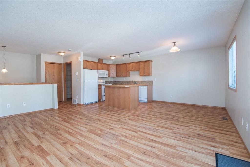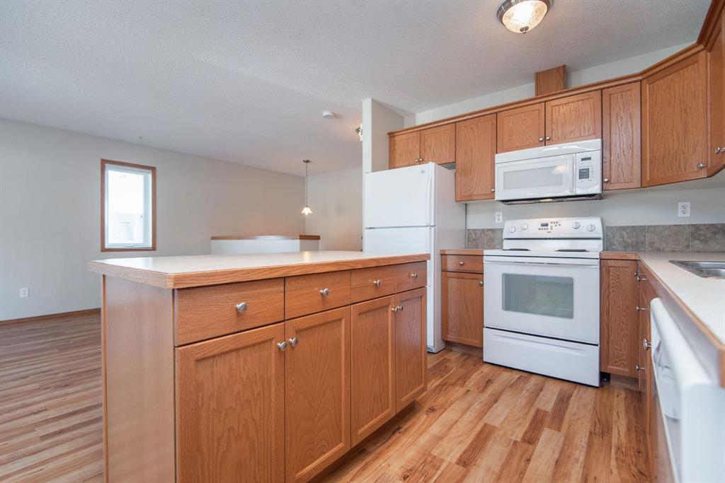 Charming and affordable condo located in the heart of Eckville, a welcoming West Central Alberta community offering K-12 schools, parks, a spray park, restaurants, and local shopping. This clean and well-maintained unit provides immediate possession and features two bedrooms, one and a half bathrooms, and an abundance of storage throughout. An assigned parking stall with electrical plug-in is included for added convenience. Property is being sold as is, where is at the time of possession, with no warranties or representations made by the seller. A great opportunity for first-time buyers, investors, or those looking to downsize