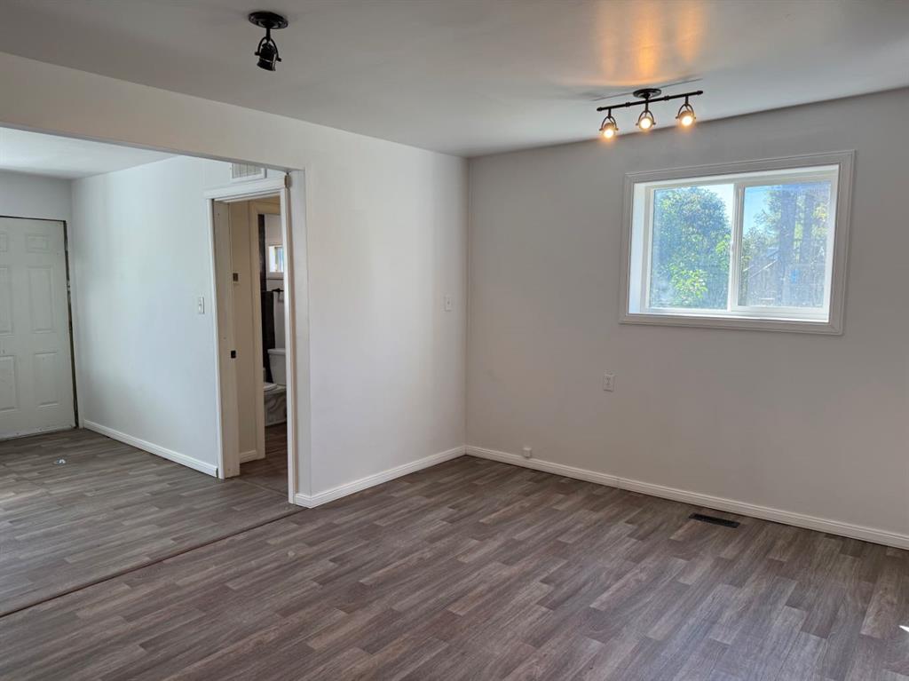 Kitchen is open to the living room. There is a large primary bedroom to the right and an addition with storage/mudroom at the back. The 4 piece bathroom is next to the kitchen, and laundry. Basement is partial and unfinished. Property also offers a single detached garage. There is also a storage shed at the back. Lots of yard space for all the toys. For buyers looking in the area, this home is a must see!