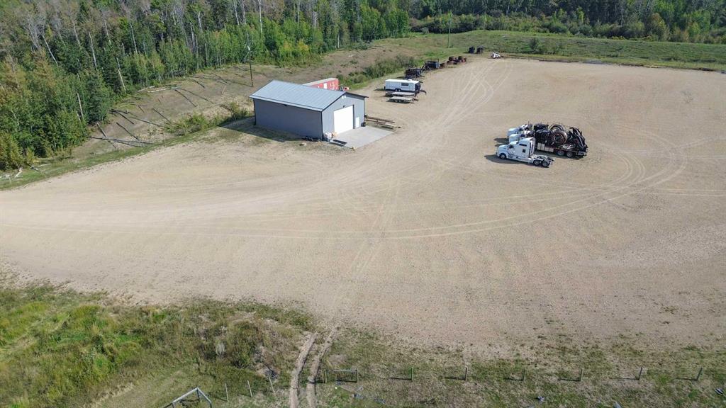 Spanning 141.25 acres, this exceptional property is a prime opportunity for buyers seeking space, versatility, and modern amenities. Nestled amidst dense evergreens with Sylvan Lake's water edge nearby, it offers both natural beauty and practical functionality. The property features a state-of-the-art 40x60' insulated shop with overhead radiant heat, 16’ door, concrete floor with drain, a poured concrete apron, metal siding inside and out, perfect for heavy-duty projects. A massive, level gravel staging area is ideal for oilfield, industrial, or storage needs. Fully serviced with natural gas and electricity (100amp), the land is completely fenced and cross-fenced, boasting a premium steel gate entrance for added security and appeal. Additional highlights include a 8X53' trailer skid shack and a septic tank (shop drain), making this expansive property a rare find for industrial, agricultural, or recreational buyers looking for a blend of utility and serene surroundings. The land opens up to the SW & near the existing 8.77 acre house/parcel, which is also for sale - A2265232. The seller grazes between 80-100 head of bucking horses on this land. You could log some additional room depending on needs, everything is fenced/gated for grazing without issues around the wet areas; including the gravel area, which is enclosed back to the gate. Rainy Creek Rd. does not ban in the spring for heavy equip making this property ideal for commercial use.