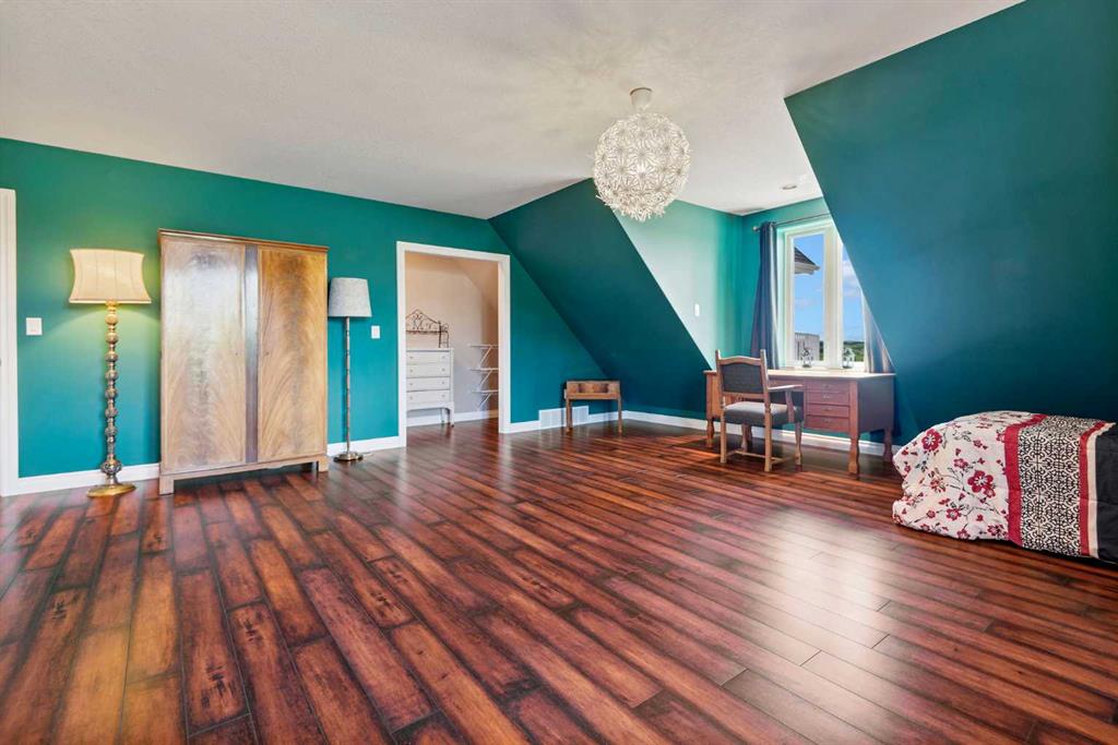 Executive 2 Storey Home with Quad Attached Garage & Huge Shop on 4.99 Acres! Impressive 5,000+ s.f. energy efficient 2 storey home built on a poured concrete slab with in-floor heating by on demand boiler, with 13" ICF walls throughout, triple glazed PVC windows and Acrylic Stucco Finish. Entering the grand foyer, a flood of natural light highlights the coloured concrete flooring, 10' ceilings, a chef's dream kitchen with upgraded cabinets, quartz countertops built in high-end appliances, new microwave, new taps, and a huge kitchen island. The kitchen overlooks the dining area and living room, with French doors to an enclosed patio area, great for entertaining and everyday living! Also located on the main floor a 2 piece bathroom, office, laundry room with sinks and plenty of cabinets, and the Primary bedroom comes with French doors to the patio, a 4 piece ensuite with dual sinks, 6'x6' steam tile shower and a huge walk-in closet. A grand wooden staircase featuring wood and metal railings and a vaulted ceiling leads to the upper level, where you will find 2 more huge bedrooms with dormer windows (which could easily be converted to 4 large bedrooms), 3 piece bathroom with a beautifully tiled shower, and a huge family room with stand alone gas stove, and access to the upper balcony where you can see for miles and miles! Additional features to this amazing home include sound & security system throughout, new central vacuum, and all doors are a minimum 3' wide and halls are minimum 4' wide. The first attached garage was built in 2012, comes with in slab heat, separate storage room, and overhead doors c/w openers. The second attached garage was built in 2015, and comes with an overhead forced air heater, and overhead doors c/w openers. If you like some shade with your sunshine, look no further, as the partial wrap-around concrete deck provides plenty of options, an enclosed sunroom, decorative pillars, built-in fire-pit, concrete block retaining walls, along with the roof top sundeck, all of which feature panoramic views. The landscaping includes many perennials, trees, shrubs, raspberry and saskatoon bushes, and a bountiful garden. This property also comes with a pumphouse, hen house, and underground power with a Natural Gas Generator that kicks on as soon as the power goes out. There's no shortage of places to park equipment on this property, as this property features a Huge Shop (42'x72' enclosed) with 16' ceiling, 5 overhead doors (14'x12'), forced air furnace, hot water tank, 220 wiring and gravel floor. The open machine area provides an additional 42'x80', all of which has a gabled roof, finished with metal and coloured clad exterior. Lots to take in with this Amazing property!