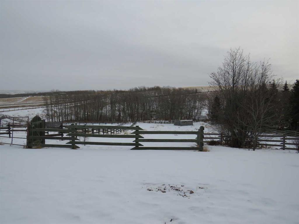 JUDICAL LISTING – 154 Acres located north of Sylvan Lake on the Rainy Creek Road. Land has 141 arable acres with 9 acres of open & bush pasture with some walk out cross fencing. The residence is 1590+/- sq. ft., built in 1994 with 2 bedrooms up and 3 bedrooms down. Main floor has spacious back entry leading into a large country kitchen/living/dining room and center island with vaulted ceilings. Living room has a nice rock face wood fireplace with lots of natural light and views to the north east. Primary suite has double closets and a 4 piece bath with patio door to large north east facing deck. Another 4 piece bath complete the main level. Walk-out basement has 3 bedrooms – average size plus a large family room complete with a corner wood burning stove. There is a cold room, furnace room and laundry room with door to a single attached garage. Lots of natural light with 2 bedrooms having patio doors to exit onto a concrete patio. The shop is 50’ x 100’ with 16’ ceilings, in-floor heat and a 3 piece washroom with corner shower. There are 3 – 14’ x 16’ overhead doors plus a 14’ x 24’ overhead door with electric opener. Shop has a metal roof and walls and the inside is also metal lined. Nice clean property.