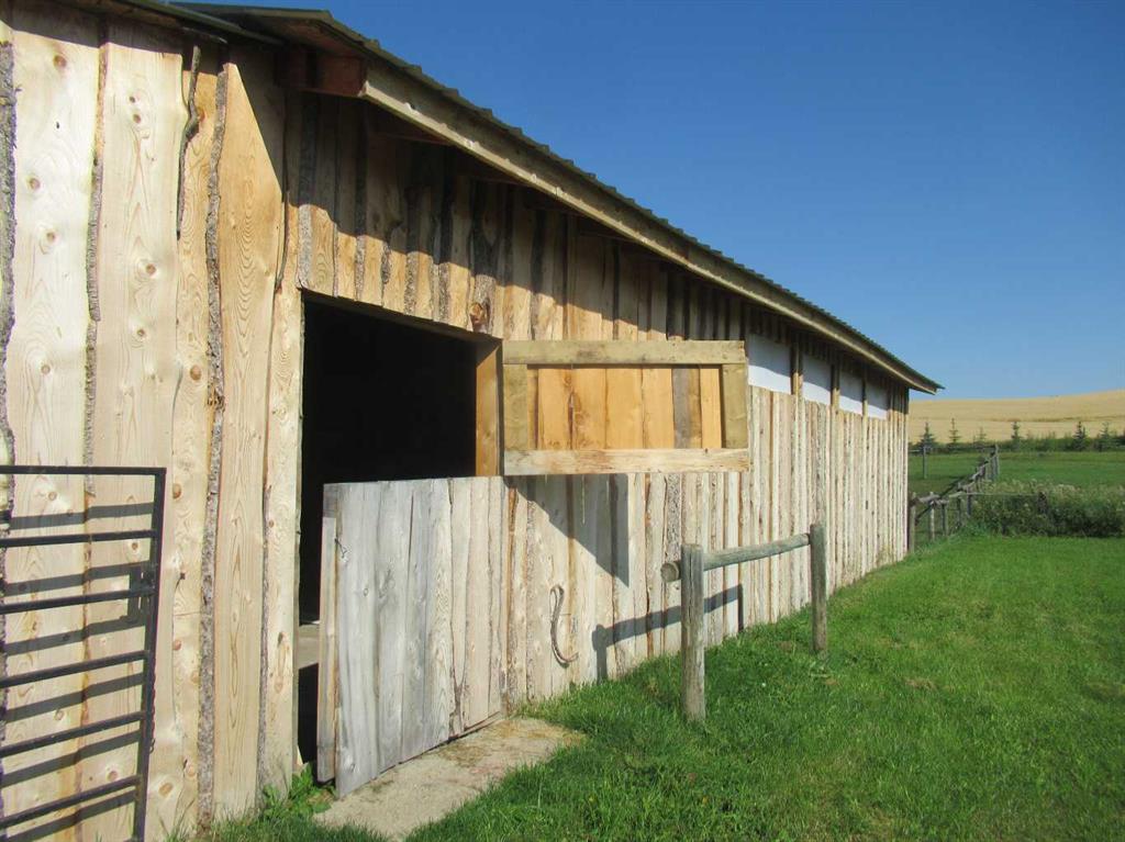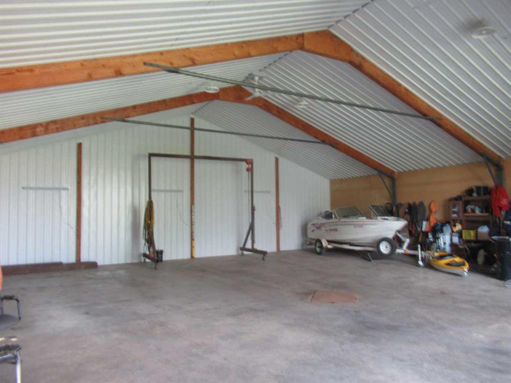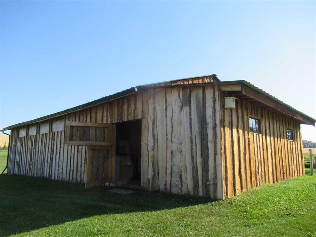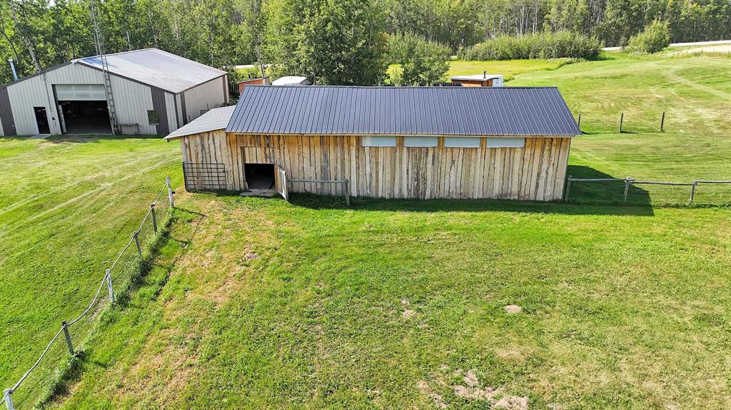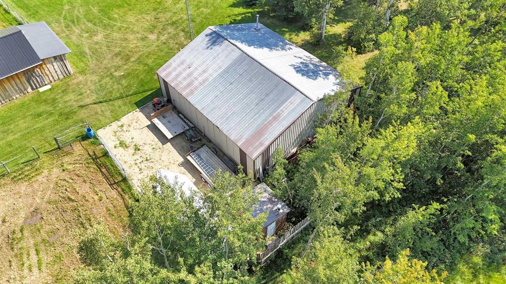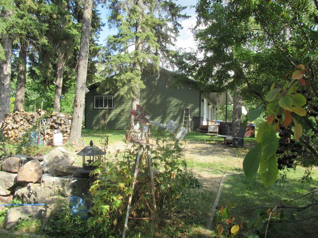 This versatile acreage is 9 acres with access to a great view of Sylvan Lake and Palm's Bay. Boat launching' and beach access are both available close by at the Palm's bay access road (Range Road 23). Another beach and boat access point is available a mile to the east, at Sunbreaker Cove. Other recreation features on this beautiful acreage include the horse-shoe pits, a fire pit, a gold fish pond, and a deck with a hot-tub. The wooded natural areas have large numbers of wild saskatoon, chokecherry and raspberry trees and bushes. The very attractive, easy-entry bungalow has a large open-concept kitchen, living room, family room area, with two bedrooms and a bath and a half, all stainless steel appliances, and a hot-water heating system are other features. Patio doors open to the large wood deck and hot-tub. Extra features of the home include lifetime shingles, quartz counter tops and vinyl plank flooring. The 57' x 26' horse barn has a steel roof and opens to several pasture areas and turn-out yards. The 50' x 44' shop has benches, in-floor heating, air compressor, shop hoist, LED lighting, steel roof, and is hidden from Rainy Creek Road by a natural shelter-belt full of wild birds. This easy access shop could, potentially, provide a home base for a mechanical, welding, or trucking business, or provide a safe home for all of your toy's. The 160 ft deep well, is tested at 14gpm, and the acreage is serviced by a septic tank system.