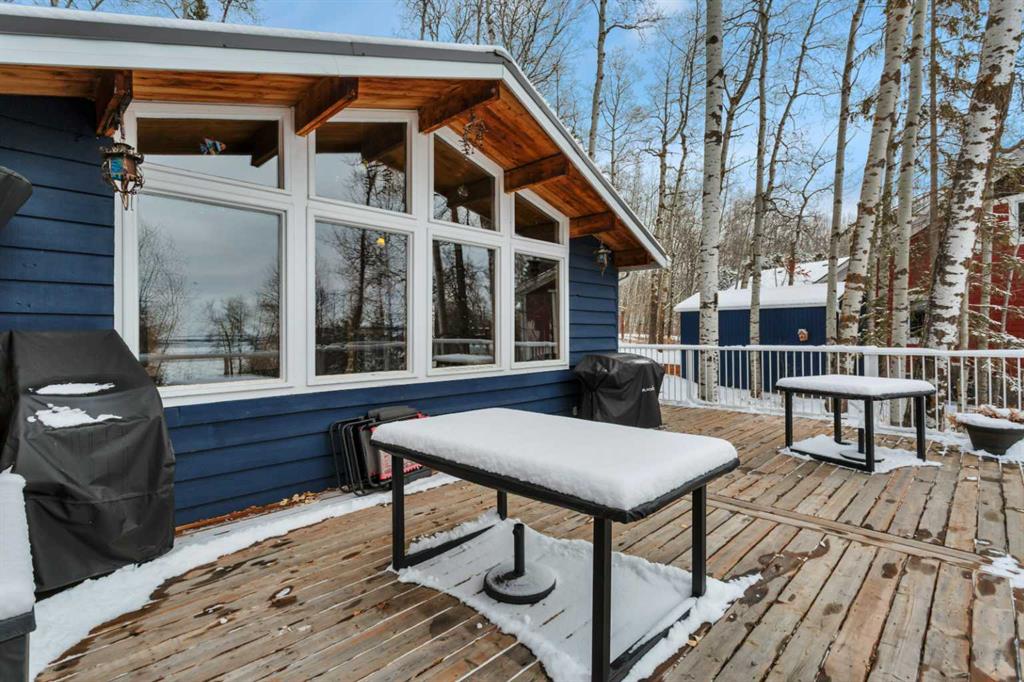 Looking for a 4-bed cabin in Sunbreaker Cove with lake access and year-round comfort? Welcome to 1225 Breakers Way, a turn key 4 season cabin offering lakeviews, direct access to the water, and an environmental reserve right out front for added privacy and natural beauty. The main floor features a primary bedroom and full bath, along with a renovated kitchen and an inviting living room centered around a wood stove. Over the past 8 years, thoughtful renovations have been completed throughout the home, including updates to the kitchen, bathrooms, and key systems, creating a move in ready experience. Each improvement was carefully designed to maximize functionality and make use of all available space, creating a layout that lives larger than expected while maintaining the charm of a cabin setting. The basement includes three additional bedrooms, two with lakeviews, a half bath, laundry area, and a separate entrance, offering flexible space for guests or extended stays. Outside, enjoy the 31 x 15 west facing deck, perfect for evening sunsets, plus a fire pit area tucked behind the cabin. The property also features a 24 x 26 heated detached garage with epoxy flooring, a shed, and two dock sections on a shared ownership dock for easy lake access. Major upgrades include conversion to natural gas, furnace (2019), hot water tank (2023), metal roof with soffit and fascia (2018), pressure tank and plumbing (2019), Well Pump(2019), a deep water line and upgraded 100 amp electrical (2019). With 21 trees planted to enhance the setting, this 4-bed cabin in Sunbreaker Cove offers a blend of comfort, updates, and lake lifestyle.