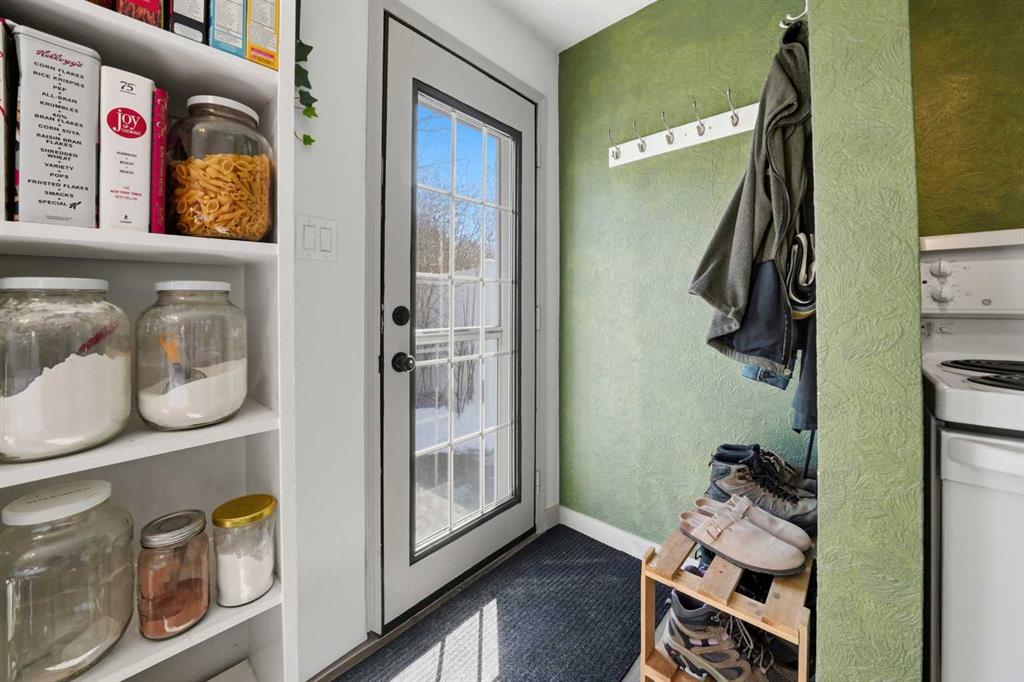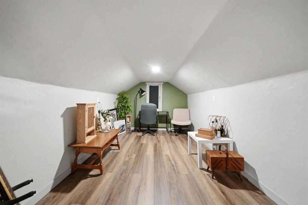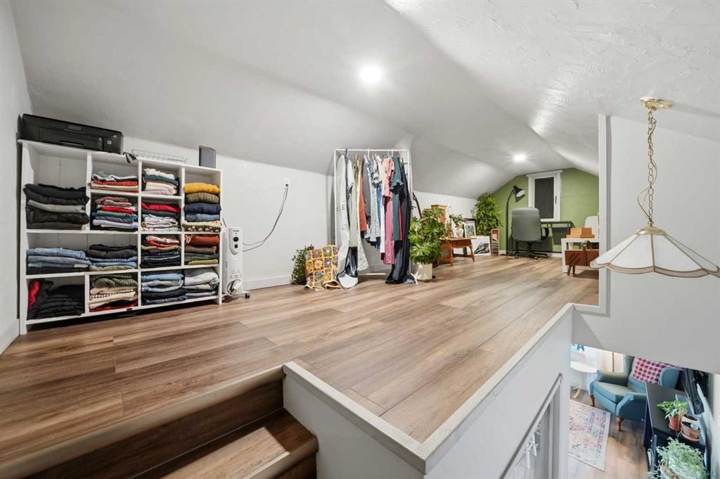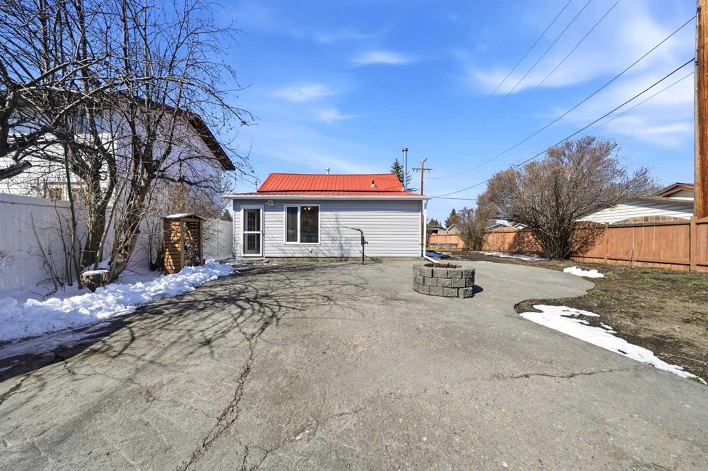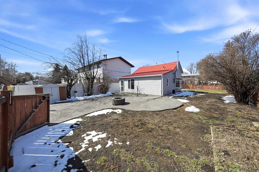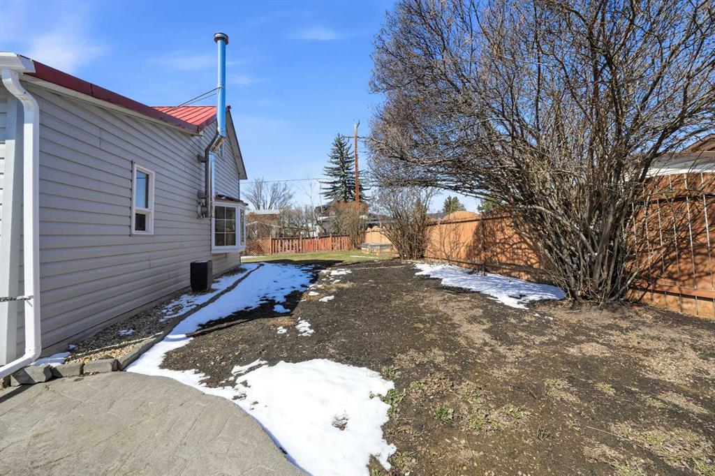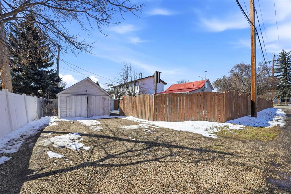 Unique opportunity in central Lacombe. This 1.5 storey home sits on two lots and offers a private, fully fenced yard with mature lilacs.