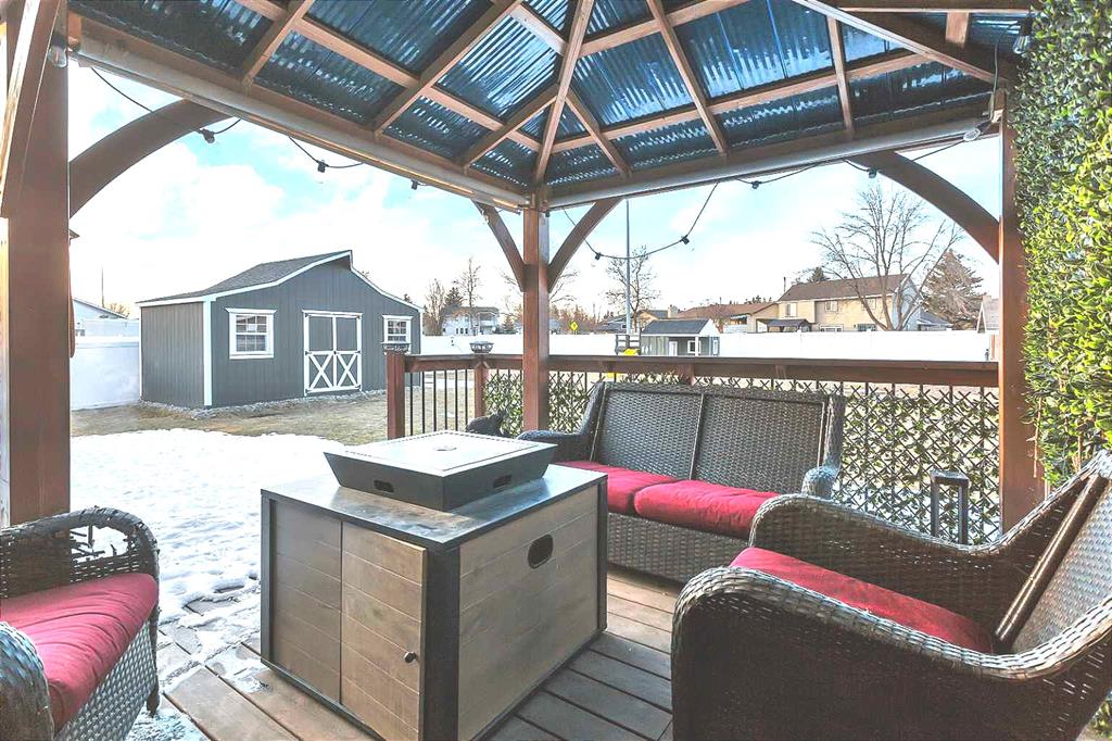 Outside is where this property really stretches out. The .28-acre corner lot offers room to breathe, with low-maintenance vinyl fencing, a long cedar deck, a gazebo for cooler evenings, and spaces for both play and purpose—from the vegetable garden to the apple tree. A large permitted custom shed, along with additional storage and a playhouse, rounds out a yard that’s as practical as it is enjoyable.