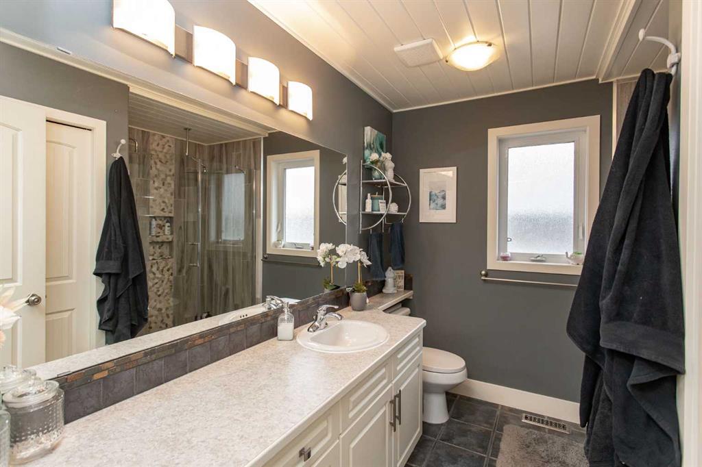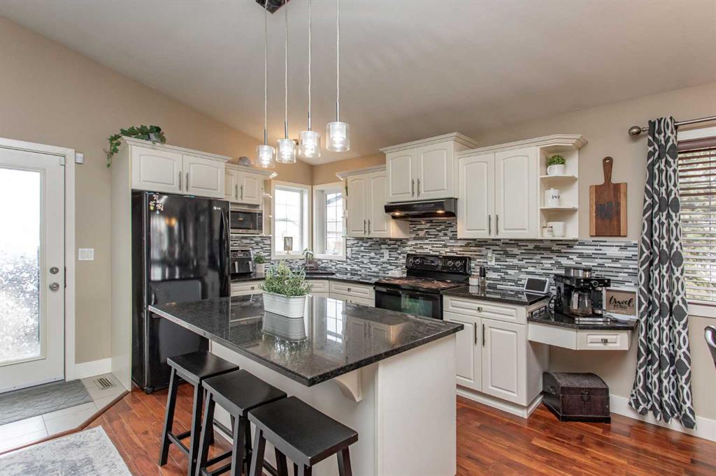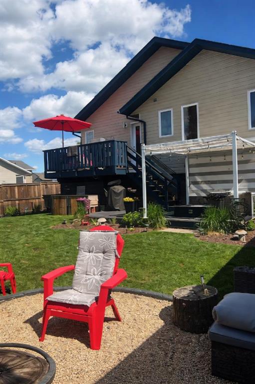 Welcome to this beautifully maintained bi-level home, perfectly situated on a desirable corner lot in Lacombe. From the moment you step inside, you’ll appreciate the thoughtful design, stylish décor, and functional layout that make this home truly stand out. The main level features an inviting open-concept design highlighted by rich walnut hardwood flooring, vaulted ceilings, and an abundance of natural light. The kitchen is both stylish and practical, offering granite countertops, ample cabinetry, generous prep space, and a convenient walk-in pantry for added storage. The adjoining living and dining areas create the perfect space for everyday living and entertaining. This level also includes two spacious bedrooms, including a primary suite designed to accommodate a king-sized bed, complete with a walk-in closet and a private 4-piece ensuite. An additional 4-piece bathroom completes the main floor. The fully finished basement offers exceptional additional living space, featuring two more bedrooms, a 3-piece bathroom, and a fantastic family/games room with a wet bar—ideal for entertaining or relaxing. Large bi-level windows allow for plenty of natural light, creating a bright and welcoming lower level. A laundry room with sink, utility room, and under-stair storage add to the home’s practicality. Step outside to enjoy the west-facing backyard, perfect for soaking up the afternoon and evening sun. The yard is fully fenced with back alley access, ample street parking, and is conveniently located near soccer fields and a neighborhood playground. Garden enthusiasts will appreciate the charming “English garden” filled with established perennials, creating a peaceful outdoor retreat. A wonderful opportunity to own a move-in-ready home in a sought-after neighborhood—this one checks all the boxes!
