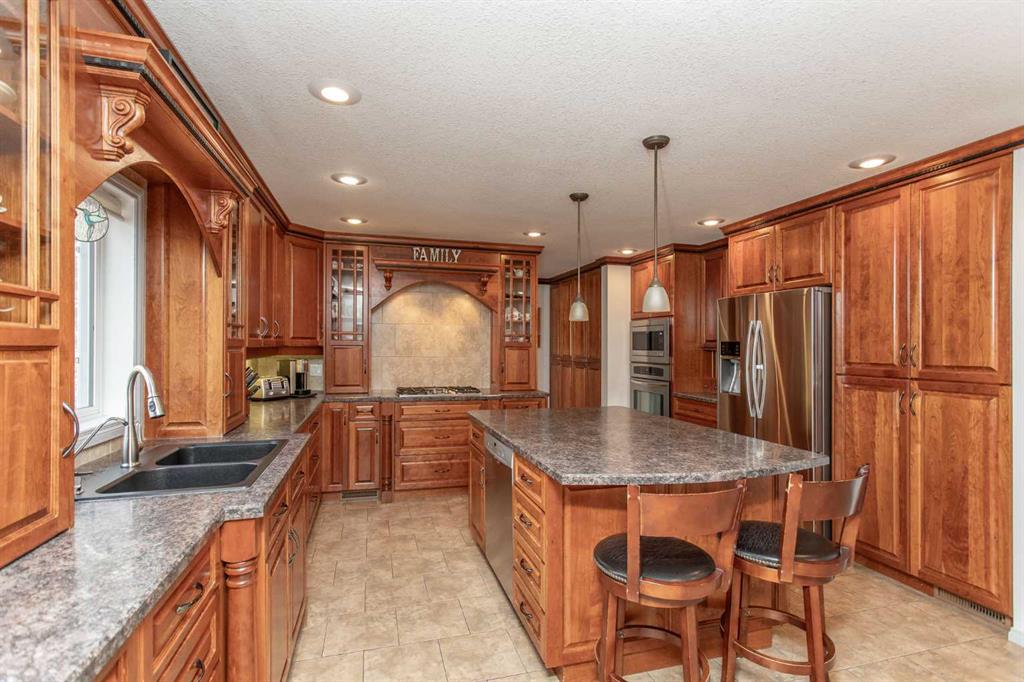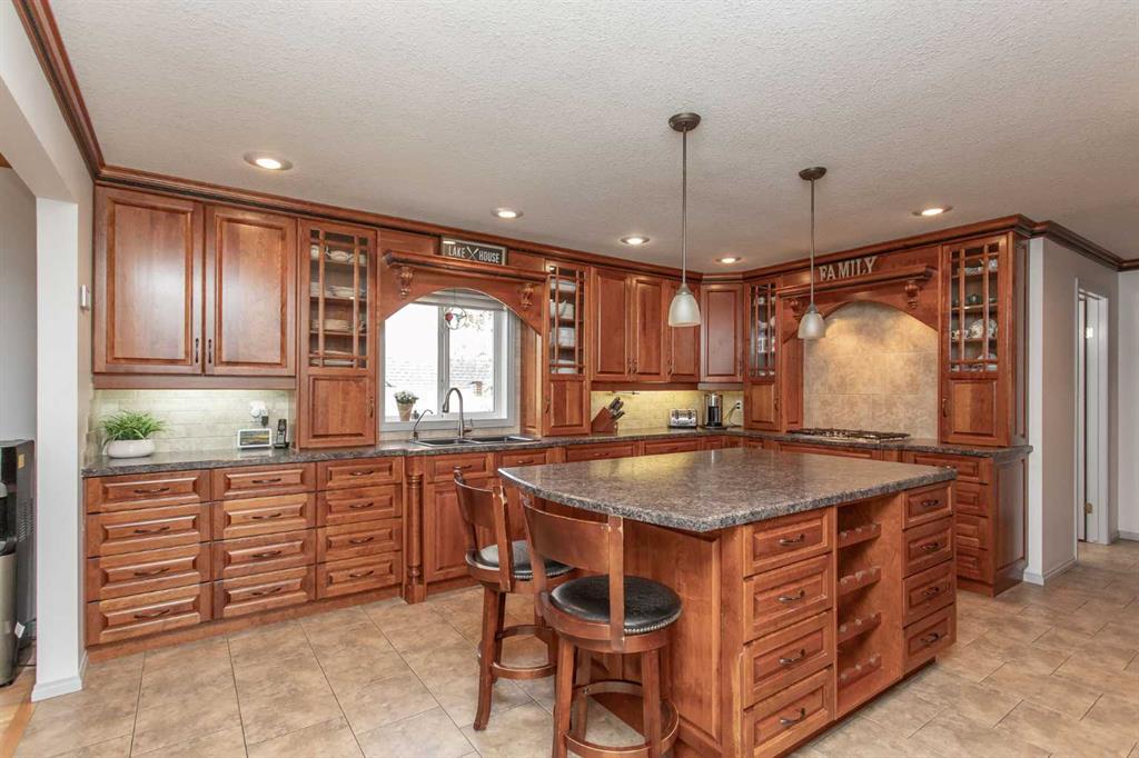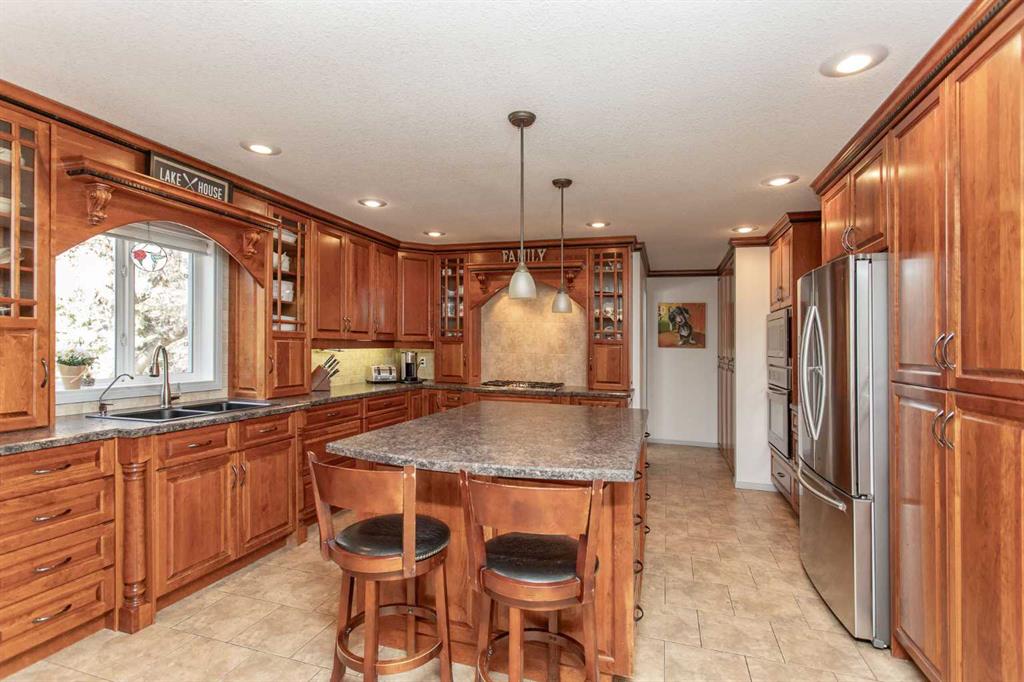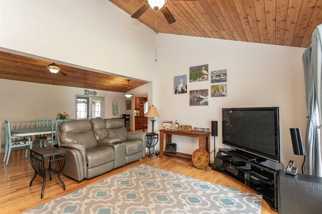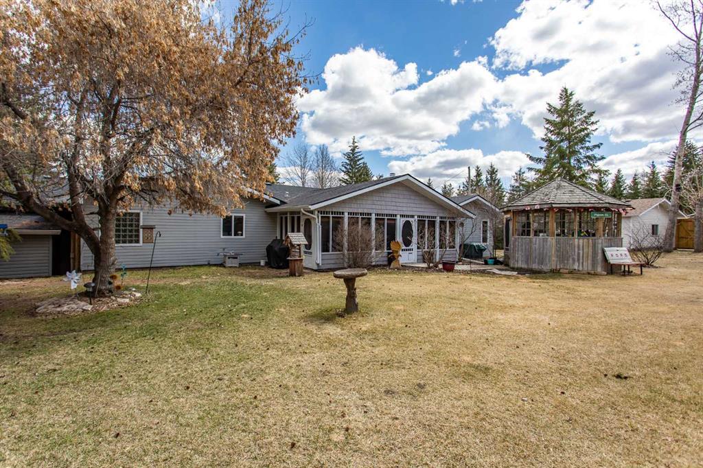 Experience the perfect balance of lakeside living and peaceful privacy in this exceptional property. 2944 square foot bungalow plus 1066 square feet of garage space! Set on a 0.68 acre lot away from city noise yet just minutes from the beach, this four-bedroom, three-bathroom home offers comfort, functionality, and room to grow. The open-concept main floor showcases a beautifully designed kitchen with rich cherrywood cabinetry, a large island with a built-in wine rack, and a gas burner stove—ideal for both everyday living and entertaining. A convenient main-floor laundry and a full bathroom with a luxurious soaker tub complete the space. The living and dining area is anchored by a striking stone-faced, wood-burning fireplace, while vaulted ceilings enhance the home’s bright, airy feel. The oversized 21' x 13'6" primary bedroom serves as a private retreat, featuring high ceilings, double doors, and a generous walk-through ensuite. The fully finished basement adds versatile living space with a family room, an additional bedroom, 3 piece bathroom and a den—perfect for guests, hobbies, or a home office. Additional features include air conditioning, a drilled water well, and a septic system with field. Plus for the person who loves spending time in the garage working on vehicles, tinkering on projects or wood working - this attached oversized four car garage is the perfect fit for the car enthusiast or hobbyist! Lots of room for vehicles with room to spare! Step outside to a spacious covered and screened-in deck (27' x 12'), extending your living space into the outdoors. The large, private yard is complete with a firepit, gazebo, and two storage sheds. Located near Buffalo Lake, a premier recreational destination, Pelican Point provides access to a public beach, campground, playground, and fully paved roads—making this an ideal year-round or seasonal retreat. Get ready to enjoy all the aspects of lake living - whether it being walking and cycling, lawn games, campfires, beach days or watersports - this exceptional property gives you an abundance of lake lifestyle and country-like living pleasures. Pelican Point is a welcoming neighborhood that has a community association that organizes community events to participate in and enjoy the comradery! Make your move -there is lots of time to enjoy winter activities still and be ready for summer at the lake!