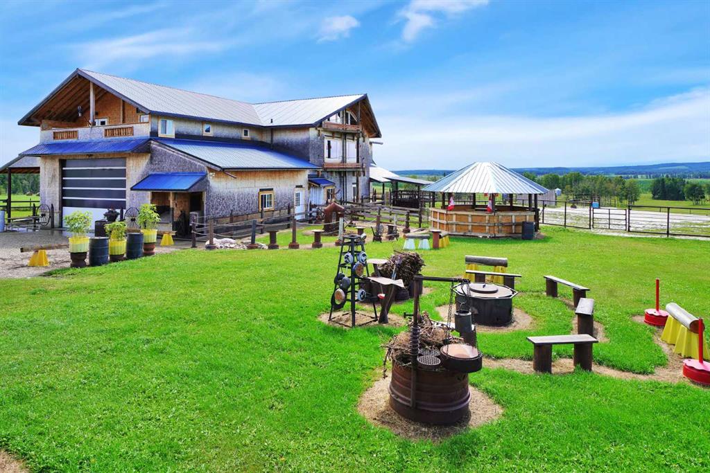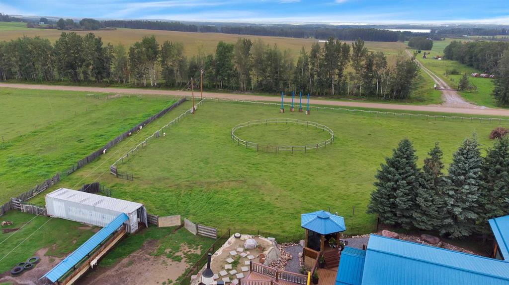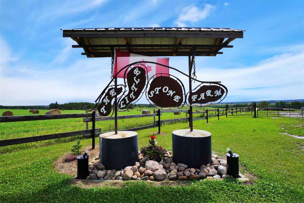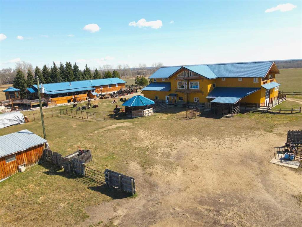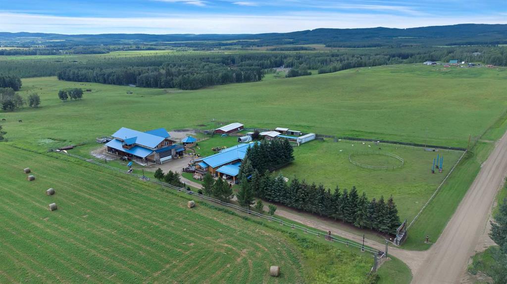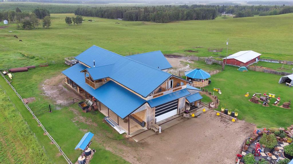 A Rare Opportunity to Live, Work & Thrive – Expansive Acreage with Limitless Potential. Welcome to your own private haven nestled among the scenic rolling hills west of Rimbey. This exceptional 79.5-acre agricultural property blends natural beauty with a rare breadth of opportunity—perfect for those seeking a lifestyle rich in both tranquility and entrepreneurial potential. Positioned atop a gentle rise, the main residence and legal suite boast sweeping views of the surrounding countryside. With over 9,000 sq. ft. of total living space, the property features 8 bedrooms, 5 bathrooms, and 2 fully equipped kitchens, offering a perfect setup for hosting. The main home has been tastefully renovated on the main level, while the expansive lower level awaits your finishing touch. The legally separated suite is an experience unto itself—with a bright, open living area and four generously sized bedrooms, each with its own private deck overlooking pastoral vistas. Step outside and discover a truly one-of-a-kind landscape: manicured gardens, whimsical artistic features, a covered outdoor entertaining space, and a beautifully landscaped yard complete with a large deck, pizza oven, and two separate firepit areas—including a grand enclosed firepit/gazebo ideal for gatherings or events. For the business-minded, the infrastructure is already in place as it was running as a bed n breakfast known as "Little Stones Country Bed and Breakfast". The 3677 sq. ft. industrial-grade shop features dual oversized automatic doors (20' x 14' and 12' x 12'), finished concrete floors, two cranes, and 8" steel I-beam construction—making it ideal for mechanical work, a fabrication business, equipment storage, or conversion into a custom space to suit your vision. The land is fully fenced and cross-fenced, complete with pens, barns, and automatic waterers—ready to accommodate a wide range of livestock, from poultry to cattle, making it perfect for a hobby farm, equestrian operation, or small-scale agricultural venture. Additional Features: Zoned AG – offering broad usage flexibility, Motivated sellers willing to assist with clean-up or customizations, Furniture, yard décor, and equipment negotiable, Sellers are open to mentoring new owners on operational aspects. This is more than a home—it's a canvas for your vision. Whether you're dreaming of a peaceful rural lifestyle, launching a new venture, or creating a retreat, this property is truly a must-see to appreciate the full scope of what’s possible.
