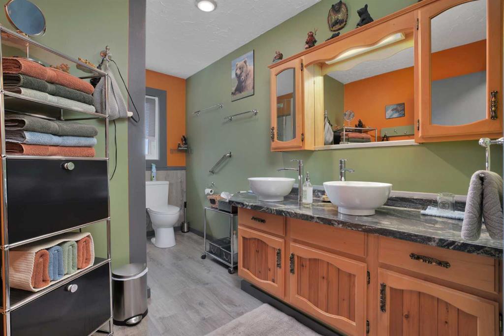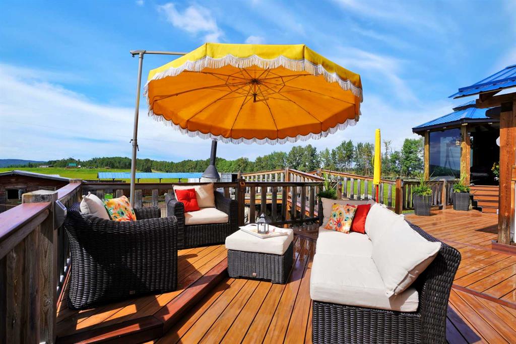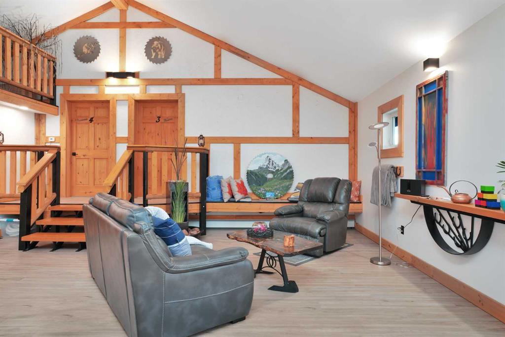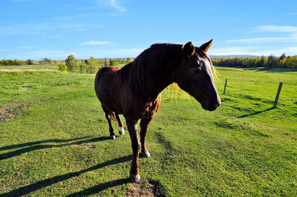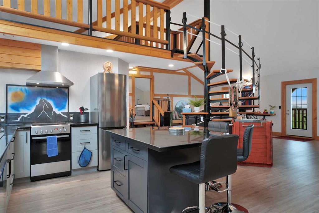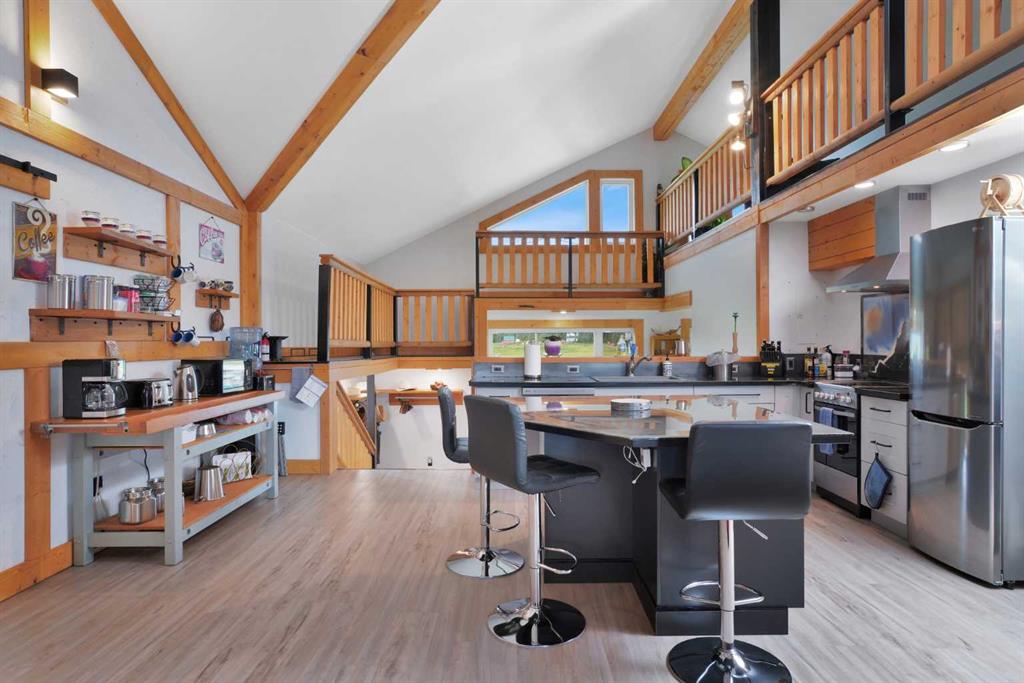 A Rare Opportunity to Live, Work & Thrive – Expansive Acreage with Limitless Potential. Welcome to your own private haven nestled among the scenic rolling hills west of Rimbey. This exceptional 79.5-acre agricultural property blends natural beauty with a rare breadth of opportunity—perfect for those seeking a lifestyle rich in both tranquility and entrepreneurial potential. Positioned atop a gentle rise, the main residence and legal suite boast sweeping views of the surrounding countryside. With over 9,000 sq. ft. of total living space, the property features 8 bedrooms, 5 bathrooms, and 2 fully equipped kitchens, offering a perfect setup for hosting. The main home has been tastefully renovated on the main level, while the expansive lower level awaits your finishing touch. The legally separated suite is an experience unto itself—with a bright, open living area and four generously sized bedrooms, each with its own private deck overlooking pastoral vistas. Step outside and discover a truly one-of-a-kind landscape: manicured gardens, whimsical artistic features, a covered outdoor entertaining space, and a beautifully landscaped yard complete with a large deck, pizza oven, and two separate firepit areas—including a grand enclosed firepit/gazebo ideal for gatherings or events. For the business-minded, the infrastructure is already in place as it was running as a bed n breakfast known as "Little Stones Country Bed and Breakfast". The 3677 sq. ft. industrial-grade shop features dual oversized automatic doors (20' x 14' and 12' x 12'), finished concrete floors, two cranes, and 8" steel I-beam construction—making it ideal for mechanical work, a fabrication business, equipment storage, or conversion into a custom space to suit your vision. The land is fully fenced and cross-fenced, complete with pens, barns, and automatic waterers—ready to accommodate a wide range of livestock, from poultry to cattle, making it perfect for a hobby farm, equestrian operation, or small-scale agricultural venture. Additional Features: Zoned AG – offering broad usage flexibility, Motivated sellers willing to assist with clean-up or customizations, Furniture, yard décor, and equipment negotiable, Sellers are open to mentoring new owners on operational aspects. This is more than a home—it's a canvas for your vision. Whether you're dreaming of a peaceful rural lifestyle, launching a new venture, or creating a retreat, this property is truly a must-see to appreciate the full scope of what’s possible.