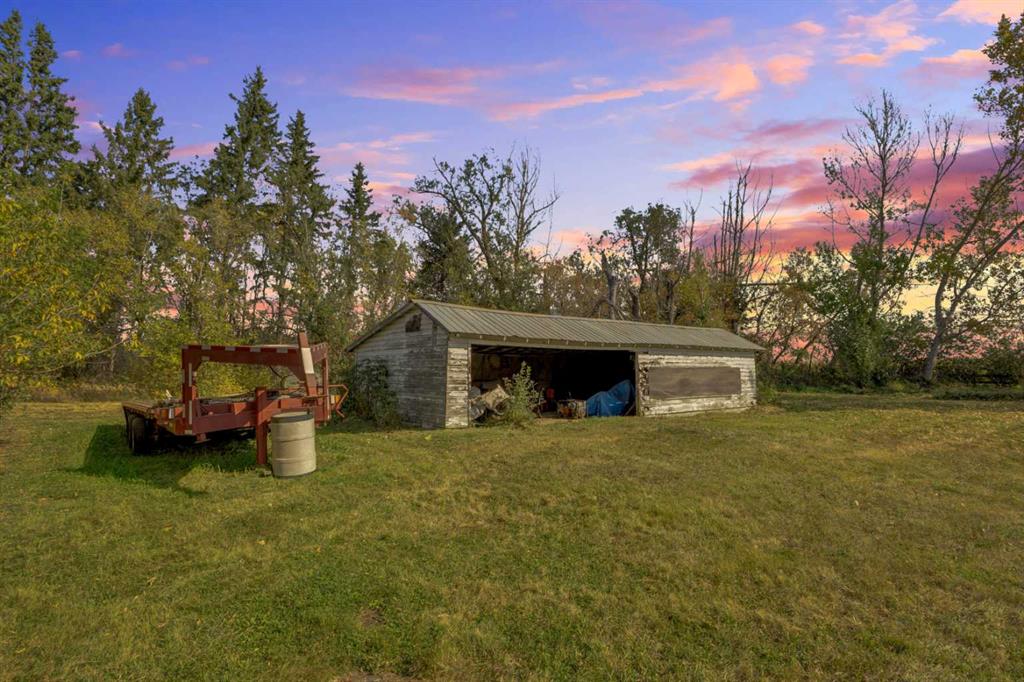 An incredible opportunity 30 YEARS in the making – and these do NOT come around often!! Just under 7 Acres of flat, usable land with the biggest and best shelterbelt you may EVER see. This acreage has so many points to hit…..solid house, originally built around 1930s with an extensive addition and renovation in 1981 and continuous upgrades over the last few decades. You have a one of a kind solid oak double spiral staircase that takes you from the upper level loft down to the basement! The interior fireplace and exterior of the home feature true Colorado stone that was hand-picked and trucked across the border to make this home unique. There are upgraded steel framed front and rear decks, mounted to screw piles – so never a worry there about rot or settlement. A complete kitchen renovation took place in 2015, new roof and windows in 2021 and all new paint, master bedroom flooring and basement reno in 2024. A new well was drilled in 2003 and the septic mound was added within recent years as well. The barn has a tin roof and with a little TLC could be a true STUNNER – WHO DOESN’T LOVE a Hip roof barn?!?! Inside you will find 5 box stalls and large pens ready to go - It measures 30ft wide x 44ft long. There is also a heated farm shop! 43ft wide with a 20ft x 14ft high door and 50ft long. Big Power. Tons of Room and everything you need. There is an outdoor riding arena with a fantastic sand base (just needs worked up as it hasn’t been used in many years) and tons of room for paddocks – all ready for you to set up for your own livestock needs. This LOCATION is absolutely spectacular, and the peace and quite with no immediate neighbors while being minutes to town is VERY UNCOMMON!!