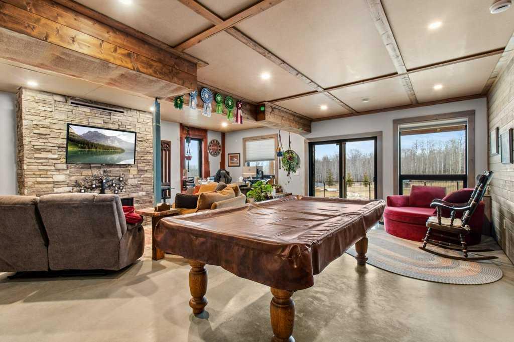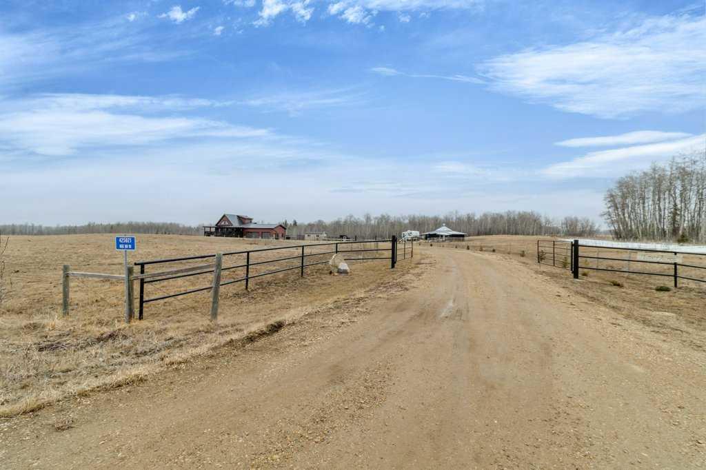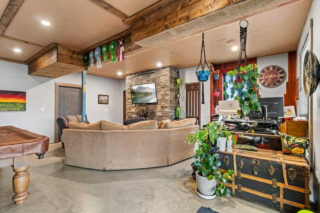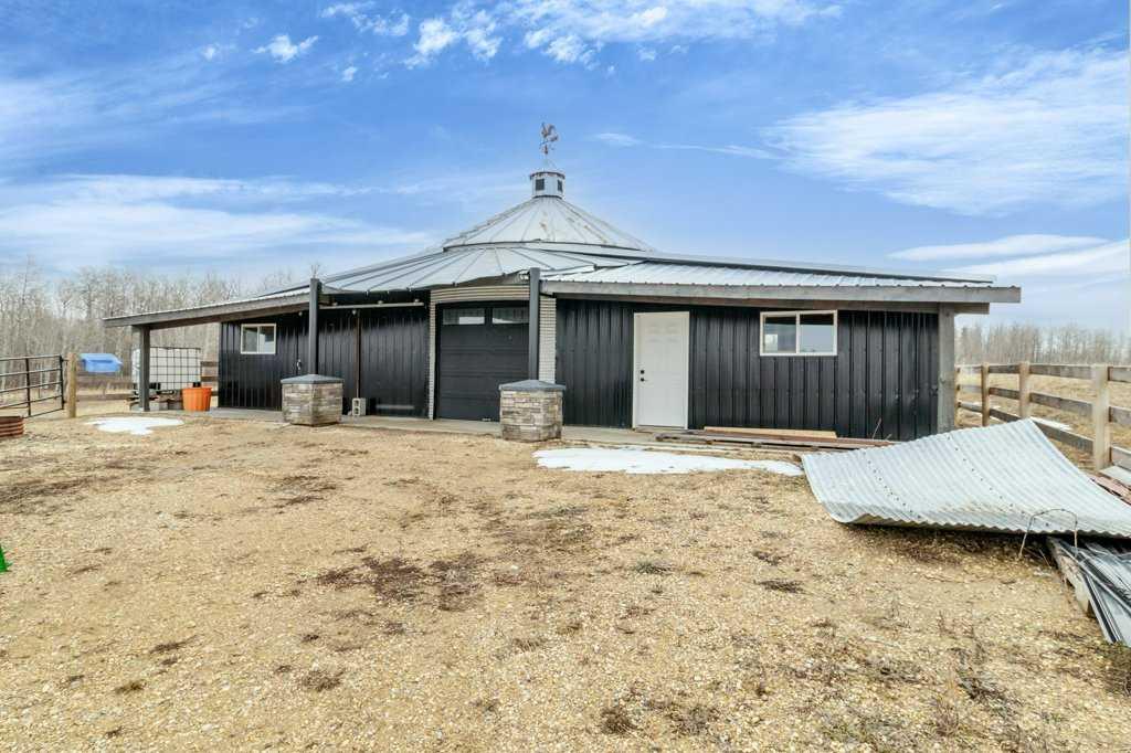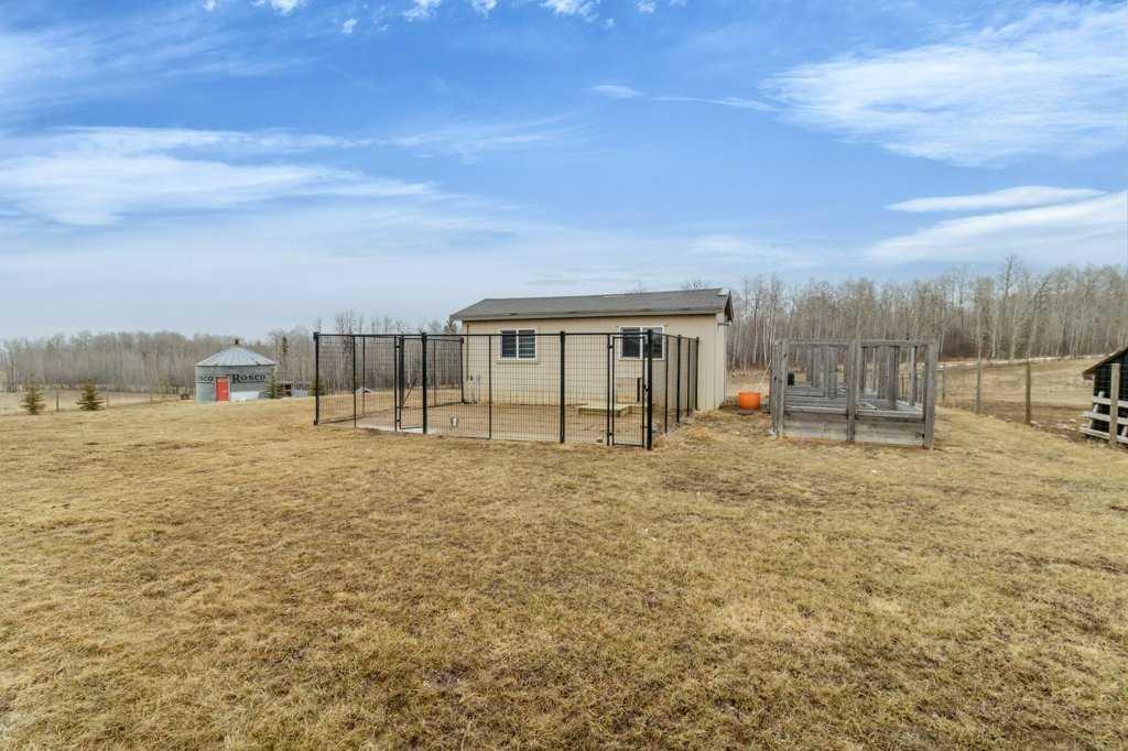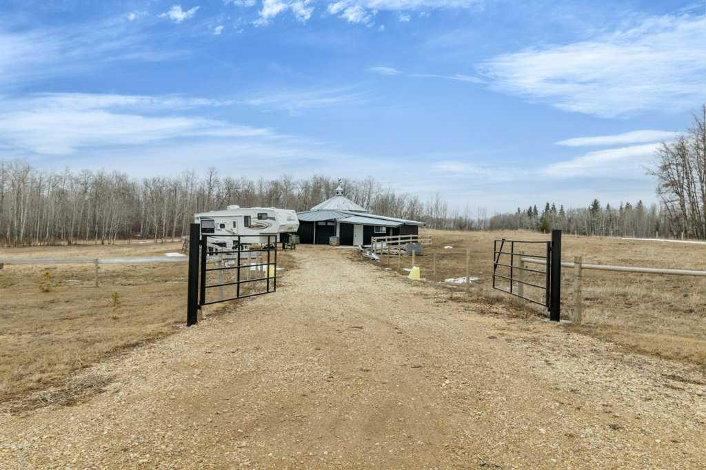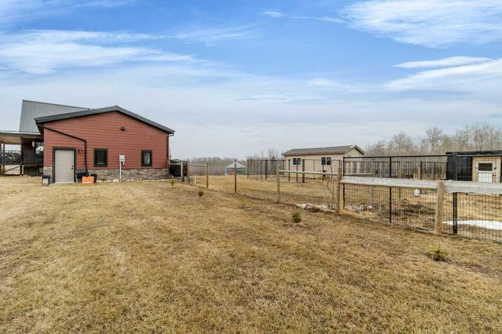 Located just 45 minutes from Red Deer, 15 minutes from Rimbey, 20 minutes from Ponoka, and 35 minutes from Sylvan Lake, this beautifully designed 2021-built acreage offers the perfect blend of rural living and modern comfort, with paved access right to the driveway. The exterior features durable Hardie board and Versetta stone, complemented by a wrap-around veranda, with a 12x24 back deck finished in Tough Deck. The property is fully fenced with 5-foot fencing for security and functionality. Inside, the main living space showcases durable vinyl plank flooring throughout. The kitchen is a standout with a 12-foot custom walnut epoxy river island, stainless steel appliances, gas cooktop, electric oven, and farmhouse sink, designed for both function and entertaining. The home offers well-planned living spaces with quality finishes throughout. A hot water on-demand system adds efficiency and convenience. The walkout basement features 9-foot ceilings, in-floor heating, a gas fireplace, two additional bedrooms, and a full 4-piece bathroom, providing excellent additional living space. Outside, the property is fully set up for acreage living. Cross-fenced paddocks are supported by a Ritchie water system for rotational grazing. Additional water storage includes two 1000-litre rainwater totes. Septic is a 2000-gallon dual tank system installed in 2021. Outbuildings are a major highlight. The barn/shop is built around an 18-foot bin with an overhead garage door, ideal for storing recreational toys and equipment. Attached is a 16x19.5 barn section on one side and a dedicated workshop on the other, offering excellent flexibility. The attached garage is fully serviced with its own electrical panel, separate from the home’s electrical system. Additional features include a heated 12x24 kennel, raised garden beds, fruit trees, solar motion lighting, and a stone pathway leading to a unique year-round fire pit set within an 18-foot bin structure with chimney. There is also a 35-amp RV plug for added convenience. A well-equipped, self-sustaining acreage offering space, functionality, and modern rural living in a highly accessible location.