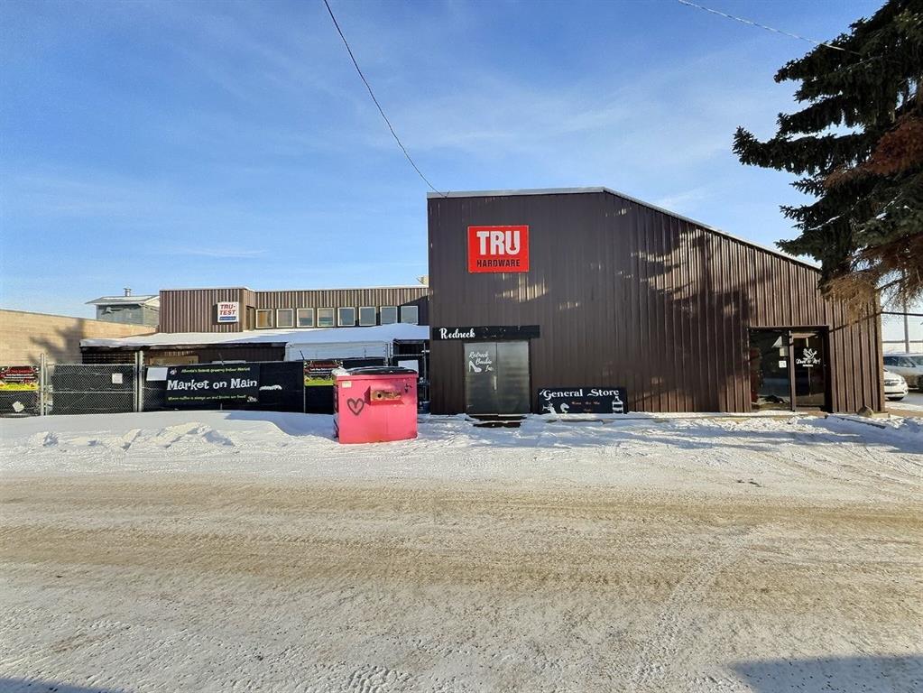 Former Bank Location Built to Last !!! HIGH REVENUE YIELD MULTI TENANT Possible. River Bank Common !!!! Ideally Located on a corner lot at the intersection of 48 Ave. & 50 Street in Ponoka. Be a Landlord of Multiple Businesses, Golden Business Opportunity to own Land, Building & Business already included in List price! This centralized commercial retail property has the space and accommodations to house one, or a multitude of store fronts or retailers like it is currently hosting. With the expansive open floor plan on the main floor, or the individual retail spaces on the second floor with a suite. The Building is already home to many businesses Like Bruces hardware, a