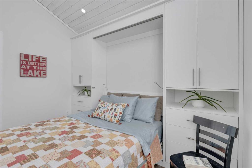 If you’re going to be on Gull Lake, this is the view you want. The sunsets stretch wide across the water, filling the home and wraparound deck with warm evening light. It’s just as impressive in the middle of summer as it is on a still winter night, and it never really gets old. Built for those ready to step away from oversized homes and into something more intentional, this Ready to Move (RTM) home delivers a smart, refined layout with vaulted ceilings, two bedrooms, and a full bath. The kitchen is designed for real use, offering full-length cabinetry and clean, functional flow. In the primary bedroom, a custom California Closet desk and Murphy bed transforms the space from productive daytime setup to a premium queen suite at night. Thoughtful touches like a towel warmer and full-size laundry make everyday living easy, not compromised. Outside, the west-facing deck overlooks a landscaped fire pit area and irrigated lawn, creating a natural extension of your living space. A large shed, dedicated parking, and additional trailer storage ensure everything has its place. Degraff’s Resort is a bare-land condominium community built around true lake living. Walk over 2 km of shoreline trails, launch your boat just steps away, and spend your days on the water or on the courts. With pickleball, playgrounds, open green space, and year-round fishing, this is more than a summer destination, it’s a lifestyle that carries through every season. From sandy beach days to quiet winters on the ice, this is where life slows down in the best way. Less maintenance, more living, and a setting that keeps pulling you back outside.