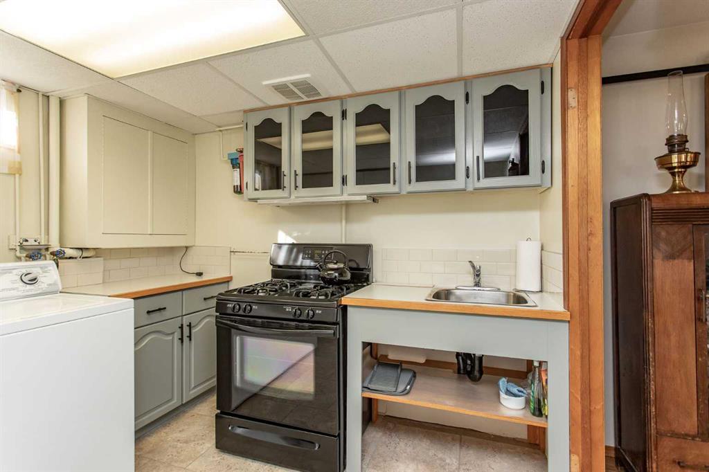 Downstairs, versatility shines with a fully developed lower level previously used as a B&B. It includes a private entrance, kitchenette/laundry area, wood-burning stove, built-in bookcase, large family room, two additional bedrooms, a three-piece bath, and cold storage with built-in shelving.