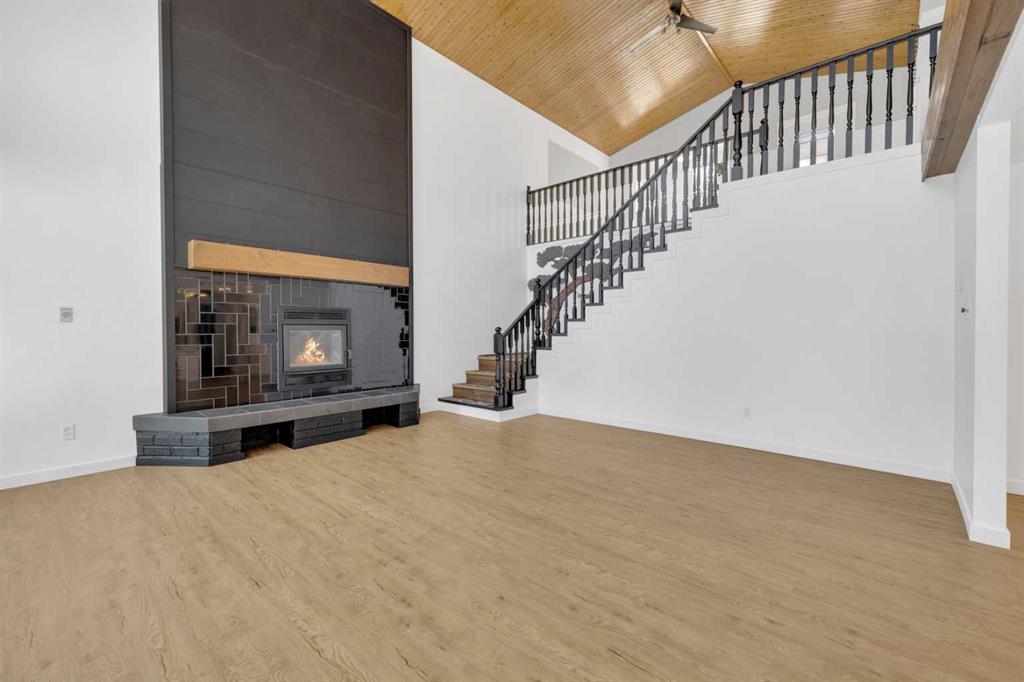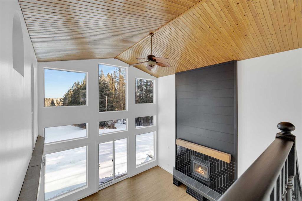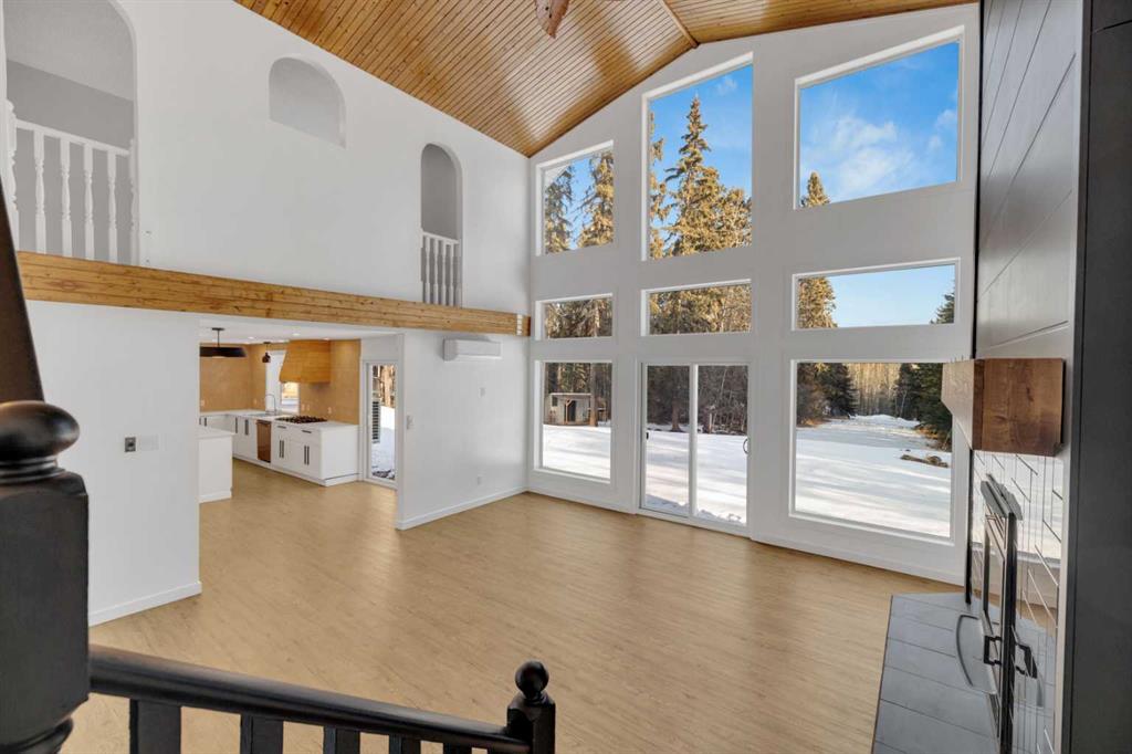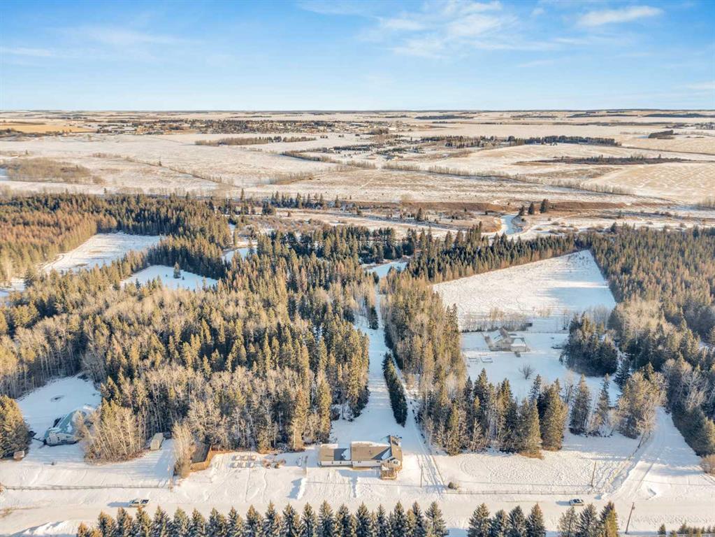 Welcome to this extensively upgraded acreage offering 3.56 acres backing directly onto the Blindman River, complete with accessible river trails, a private oxbow pond, and peaceful views north toward the Town of Rimbey from the backyard. This 4 bedroom, 3 bathroom home has undergone significant improvements over the years, creating a truly move-in-ready rural property where major systems and finishes have already been addressed. Inside, you’re greeted by a spacious, light-filled entrance that opens into a stunning lower family room featuring soaring ceilings, expansive windows, and a striking fireplace with custom hearth and surround—an ideal space for gathering and entertaining. The home offers a functional layout with a large upper den overlooking the backyard, perfect for a home office, reading nook, or flex space. The backyard is a standout feature, offering both river frontage and a secluded oxbow pond that is ideal for winter ice skating and features a small island with a picnic table, creating a unique and peaceful retreat rarely found on acreage properties. Recent upgrades include a new roof, siding, soffit, fascia, windows, kitchen and pantry, updated bathrooms, flooring, paint, high-efficiency heating and cooling systems, in-floor heat, multiple wood stoves, and more—offering long-term peace of mind and energy efficiency. The property is equally impressive outdoors with productive gardens, fruit trees, raised beds, a covered workspace, and multiple storage sheds. A rare opportunity to own a turn-key, river-backing acreage that blends privacy, functionality, and natural beauty, all within close proximity to town of Rimbey.