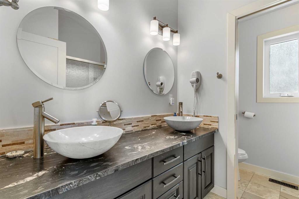 You’ll love the primary bathroom with its dual sinks and extra storage, and the spacious primary bedroom tucked at the back, offering peaceful views of the treed yard. Step outside onto the low-maintenance composite deck and relax in the sunroom while overlooking the cozy firepit area and your beautifully manicured backyard — complete with artificial turf and interlocking brick for easy upkeep.